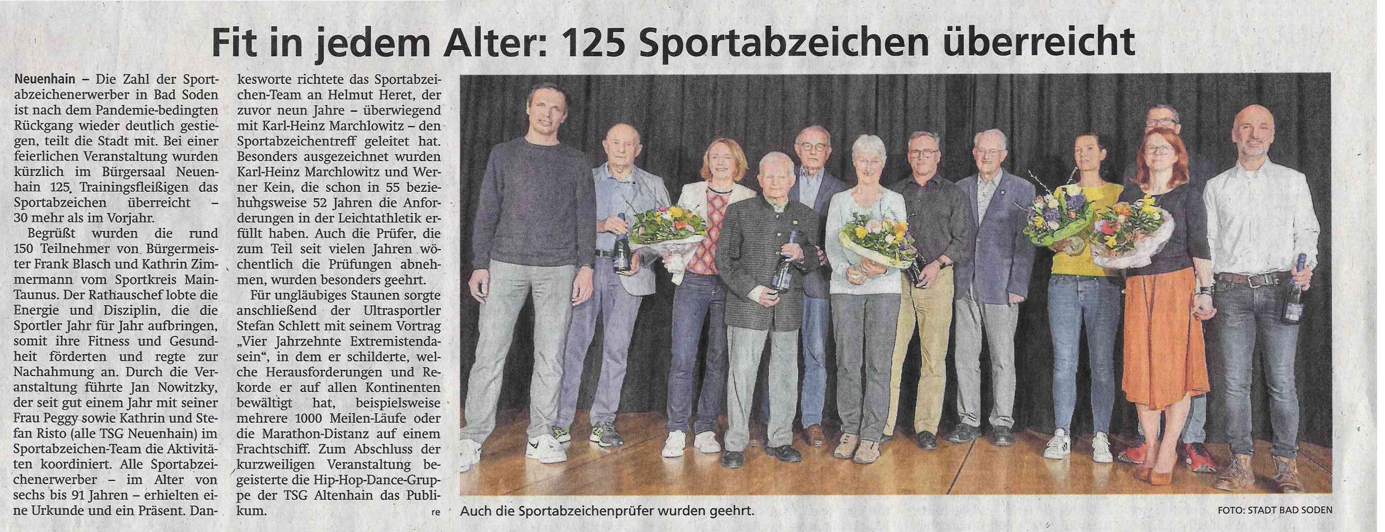 181 Bad Sodener wurden am vergangenen Samstag mit dem Sportabzeichen ausgezeichnet