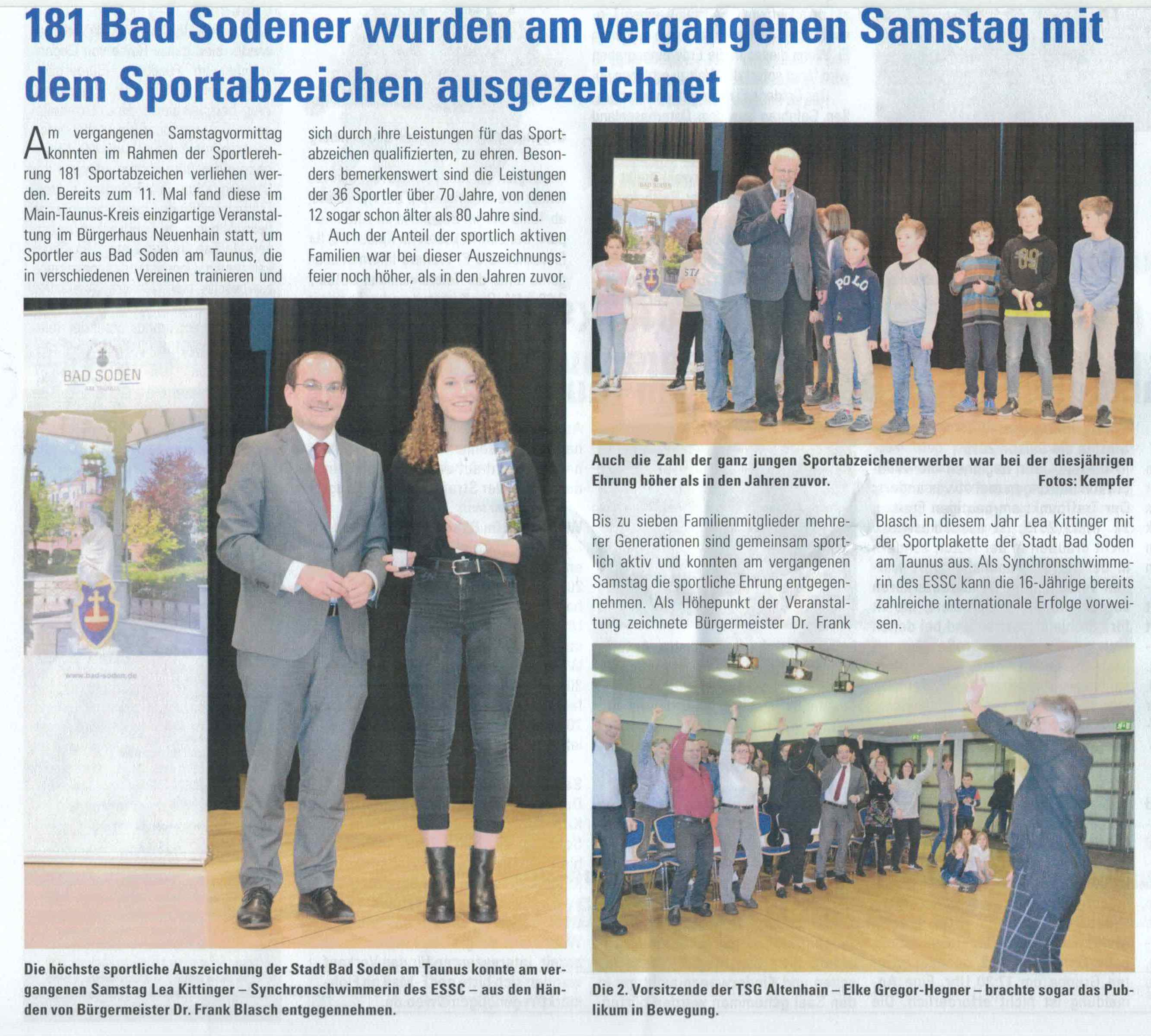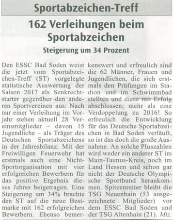 Mit 28 Mitgliedern bzw. absolvierten Sportabzeichen war der ESSC der zweitstärkste Verein in Bad Soden hinter der TSG Neuenhain. Davon waren es 15 Jugendliche, 20 Sportabzeichen in Gold und 8 in Silber.