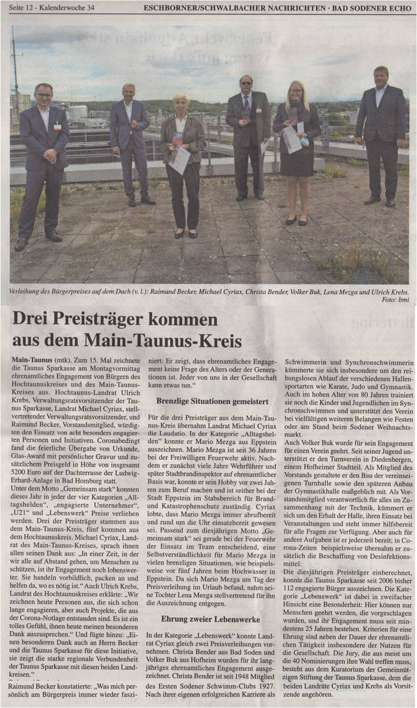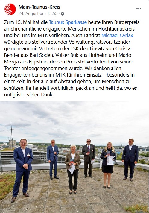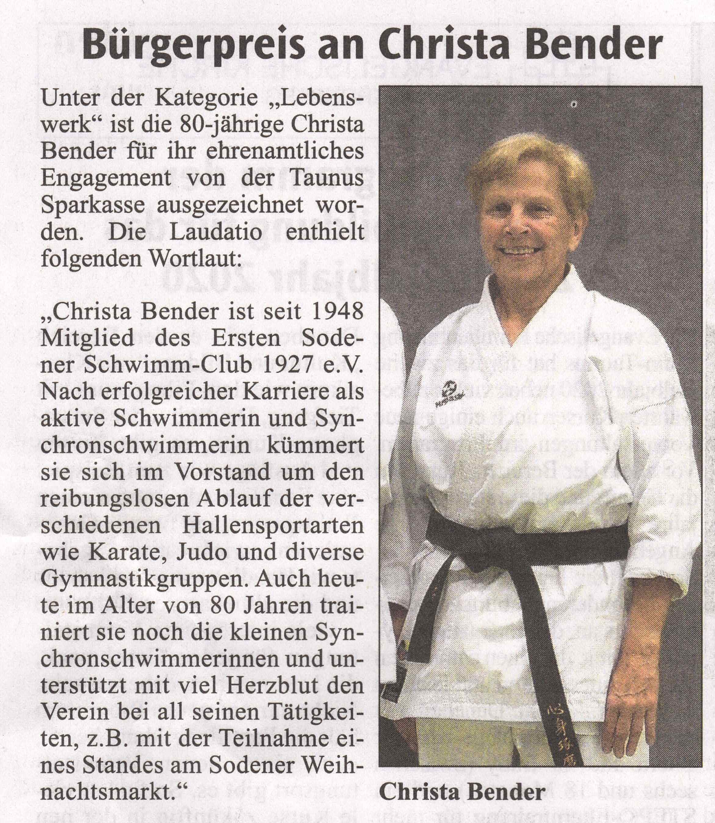 Am 24. August 2020 bekam sie für ihr "Lebenswerk" den Bürgerpreis der Taunus Sparkasse verliehen.