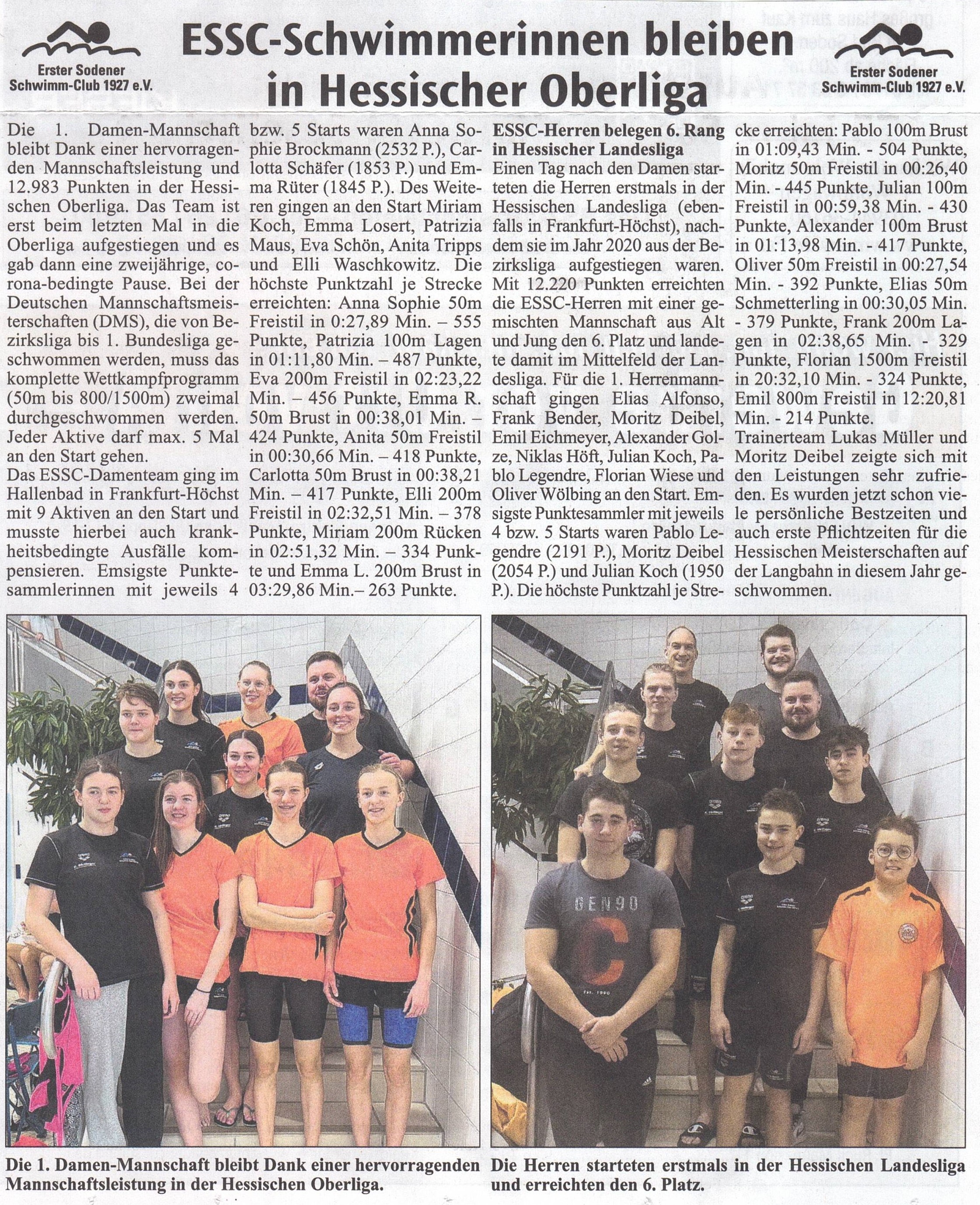 Einen Tag nach den Damen starteten die Herren erstmals in der Hessischen Landesliga (ebenfalls in Frankfurt-Höchst), nachdem sie im Jahr 2020 aus der Bezirksliga aufgestiegen waren. Mit 12.220 Punkten erreichten die ESSC-Herren mit einer gemischten Mannschaft aus Alt und Jung den 6. Platz und landete damit im Mittelfeld der Landesliga.