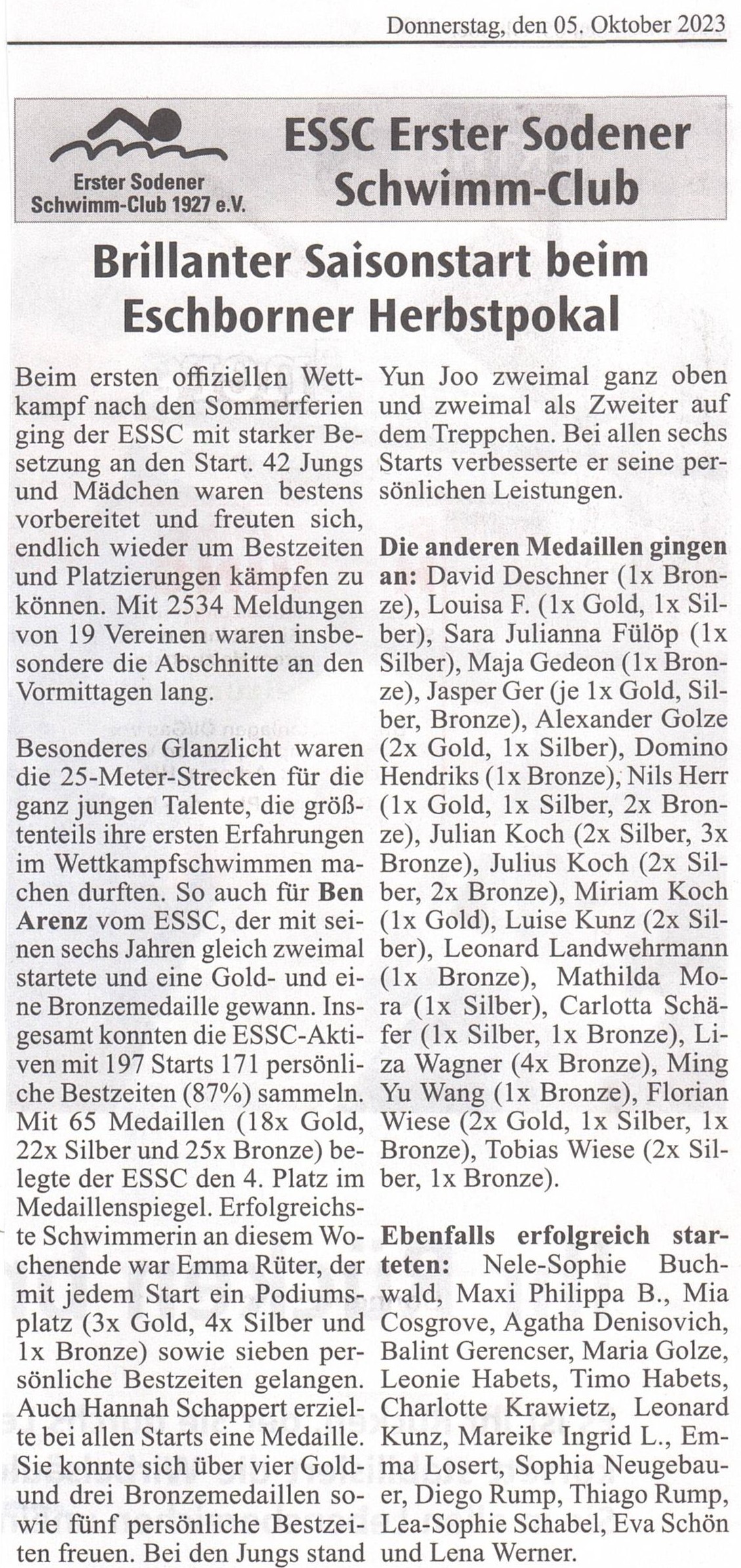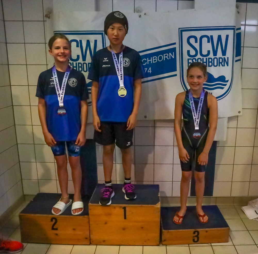 Insgesamt konnten unsere Aktiven mit 197 Starts 171 persönliche Bestzeiten (87%) sammeln. Mit 65 Medaillen (18x Gold, 22 x Silber und 25 x Bronze) belegte der ESSC den 4. Rang im Medaillenspiegel. Erfolgreichste Schwimmerin an diesem Wochenende war Emma Rüter, der mit jedem Start ein Podiumsplatz (3x Gold, 4x Silber und 1x Bronze) sowie sieben persönliche Bestzeiten gelangen. Auch Hannah Schappert erzielte bei allen Starts eine Medaille. Sie konnte sich über vier Gold- und drei Bronzemedaillen sowie 5 persönliche Bestzeiten freuen.