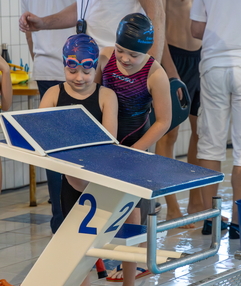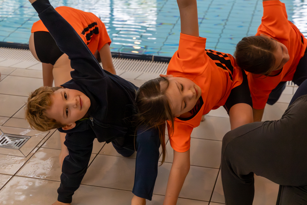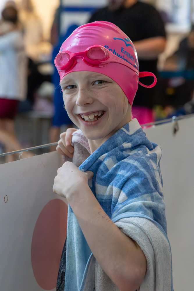 Aufregung verbunden, da die Eltern nur von draußen zuschauen durften. Zum Glück haben sich neben den Betreuer*innen auch die erfahreneren Schwimmer*innen liebevoll gekümmert und geholfen, wenn
