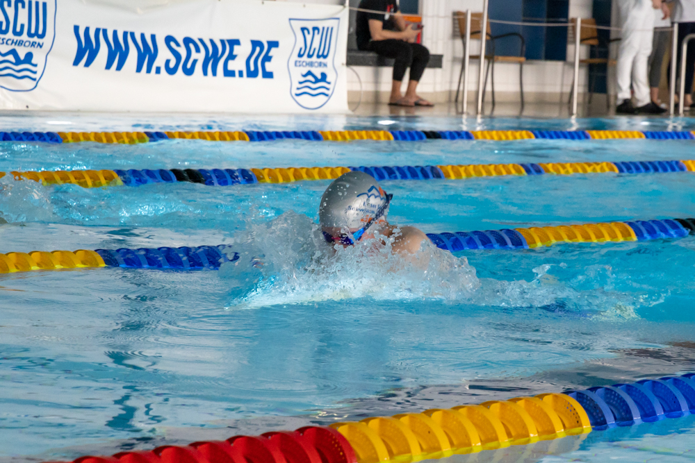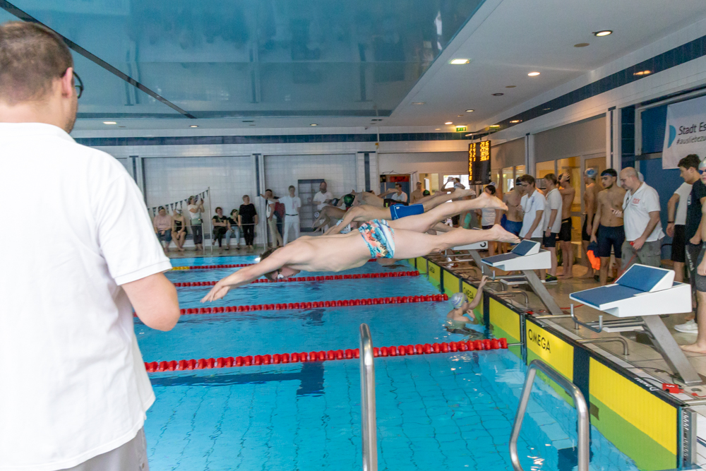 Am Samstag gingen 15 Schwimmer*innen der älteren Jahrgänge (2009 und älter) für den ESSC ins Wasser. Bei insgesamt knapp 870 Meldungen war in der Halle ausreichend Platz und eine gute Stimmung. Mit knapp 60 Starts erschwammen sie sich 35 persönliche Bestzeiten und elf Podiumsplätze. Erfolgreichste Schwimmer waren dabei Alexander Golze (je einmal 1., 2. und 3. Platz, sowie fünf persönliche Bestzeiten bei fünf Starts) und Julian Koch (zweimal 2. und zweimal 3. Platz, sowie drei persönliche Bestzeiten).