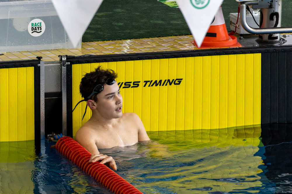 Angefeuert von den anderen ESSC-Schwimmern unterbot er die gerade erst aufgestellte Bestzeit um weitere 0,8 Sekunden und landete mit einer herausragenden Zeit von 00:37,93 auf dem zweiten