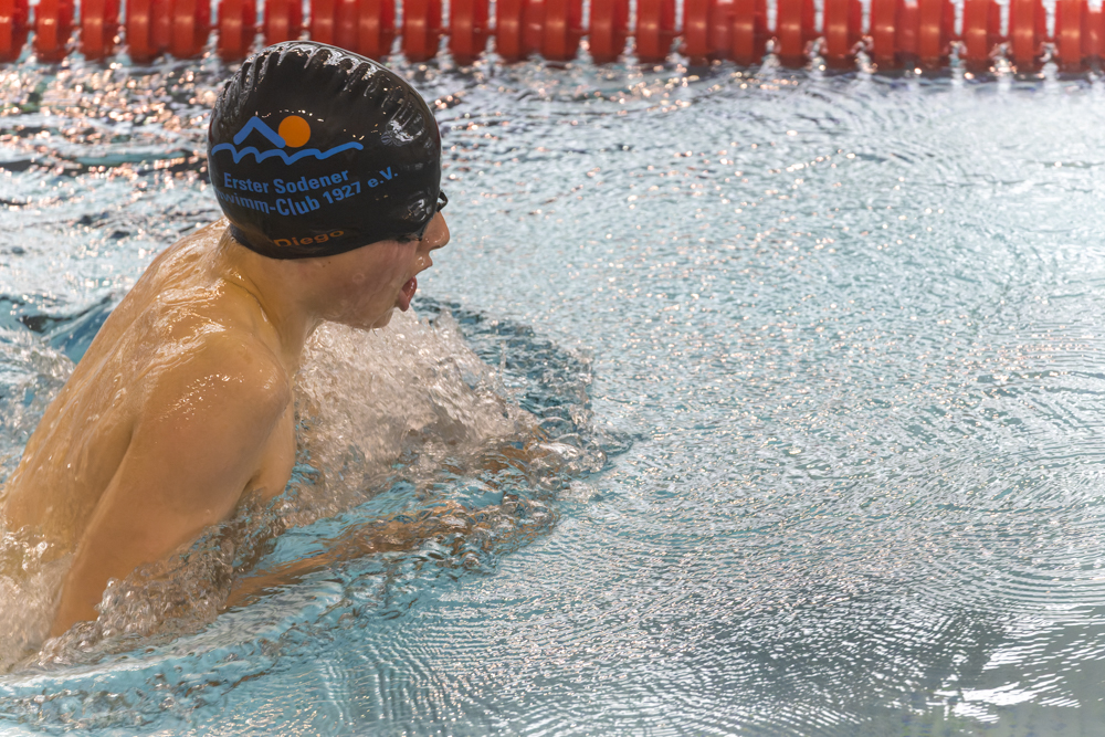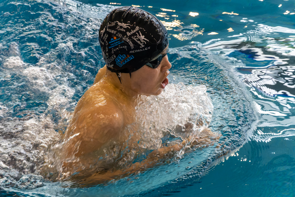 persönliche Bestzeit über 50m Brust am Sonntag gleich zweimal verbessern. Im Vorlauf schlug er mit 2,8 Sekunden schneller als gemeldet an. Damit sicherte er sich die Teilnahme am Finallauf.