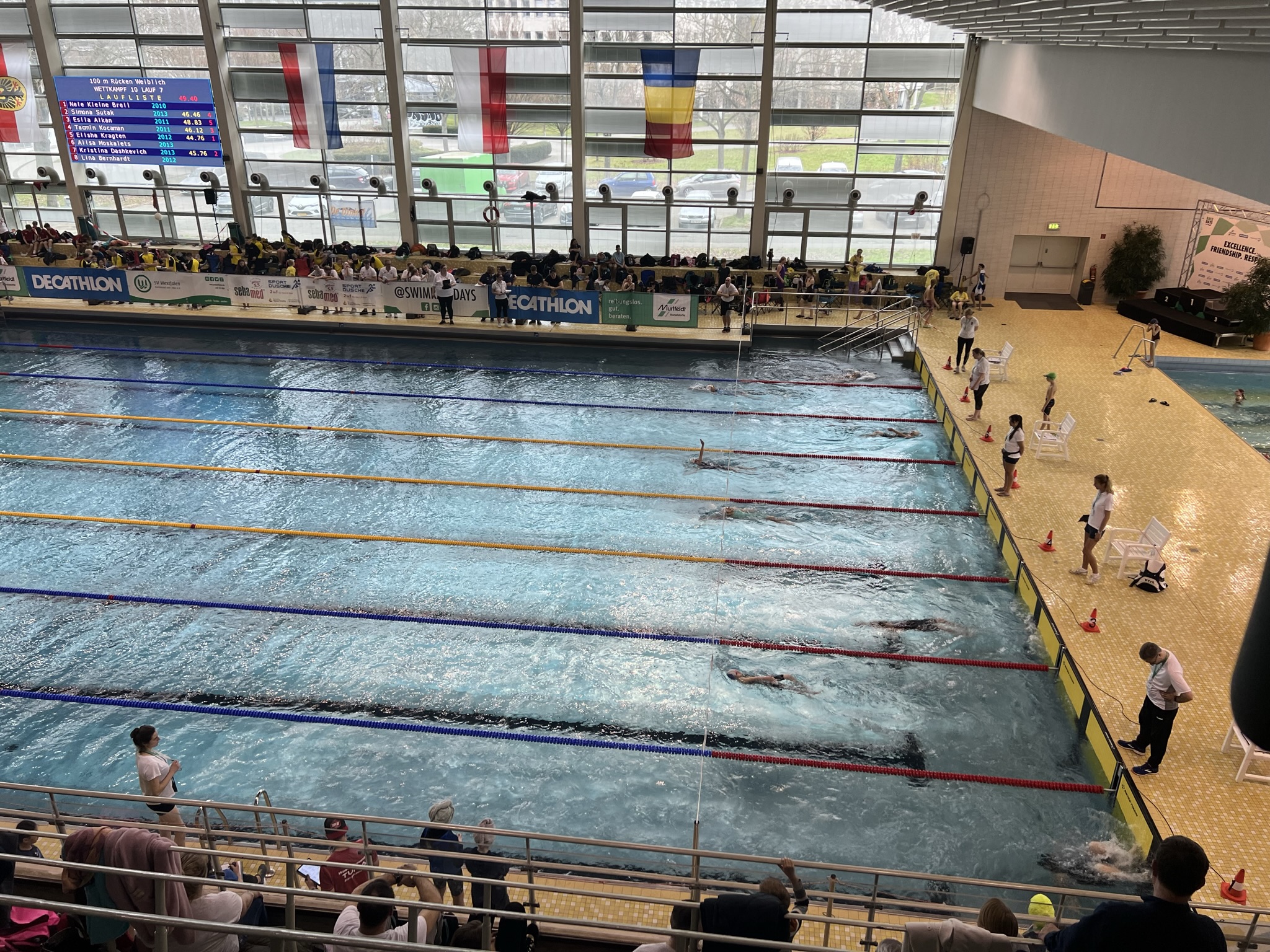 Nach zweijähriger Pause fanden die Race Days am Wochenende vom 4. und 5. März endlich wieder statt. Dieses Event hat eine ganz besondere Atmosphäre und so ist es nicht verwunderlich, dass sich am Freitagnachmittag 65 Schwimmbegeisterte des ESSC und des befreundeten Kelkheimer SC gemeinsam auf den Weg nach Dortmund machten. Darunter 34 aktive ESSC-Schwimmer*innen, 9 Starter*innen des KSCs, Julia Löw, Moritz Deibel und Lukas Müller als Coaches, sowie Kampfrichter*innen, Betreuer*innen und Unterstützer*innen.