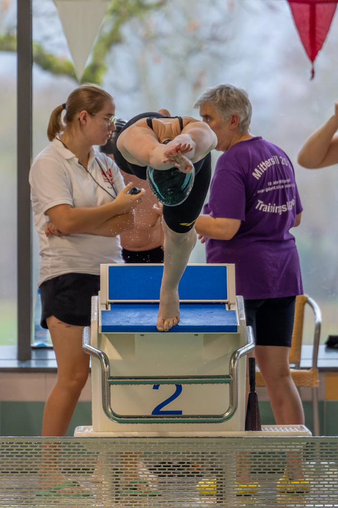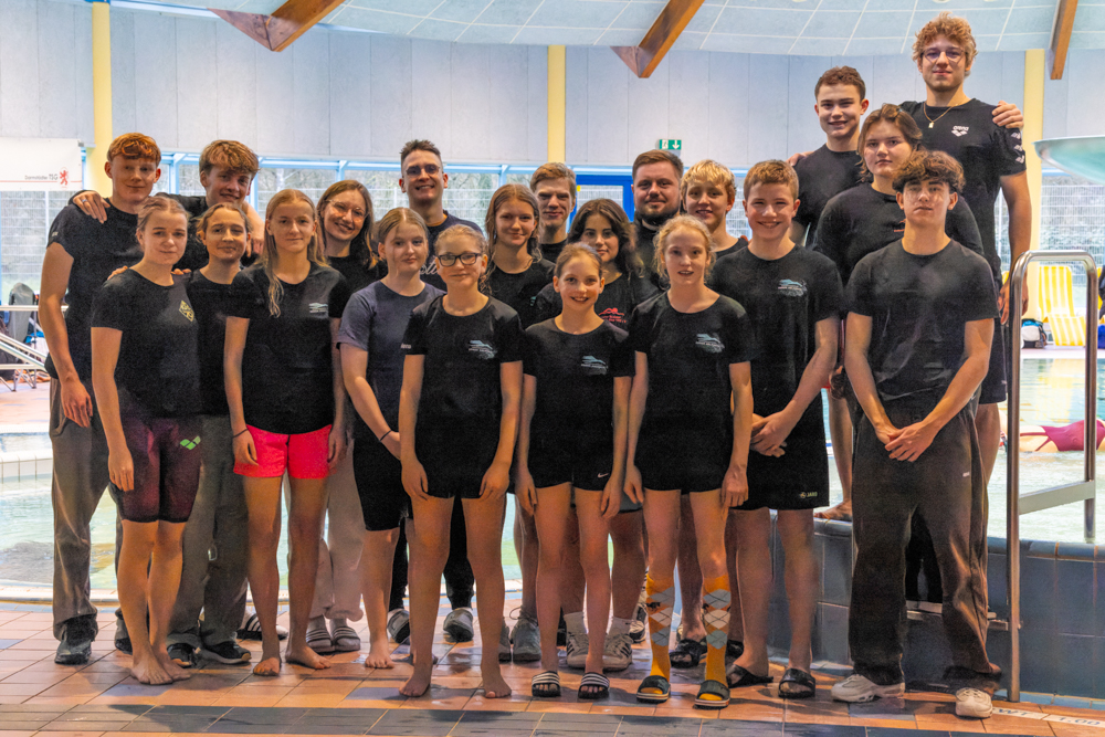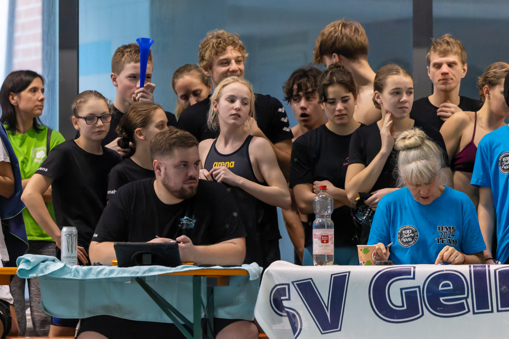 Am 3. Adventswochenende fanden die DMS auf Bezirks- und Landesliga-Ebene statt. Die DMS sind Kult für die Vereinsteams. Erfahrene und teils bereits in Rente gegangene Athleten starten gemeinsam mit ihren jüngeren Vereinskollegen und treten auch mal auf weniger beliebten Strecken an. Alles für das beste Ergebnis des Teams. Stimmung und Atmosphäre sind etwas ganz Besonderes. Die Teams kommen mit Pauken und Trompeten, Tröten und Trommeln, Sirenen und Schlachtrufen. Die Wettkampfhalle bebt, wenn 34 Wettkämpfe ausgetragen werden. Alle Einzelstrecken werden zweimal geschwommen (mit Ausnahme der langen Freistilstrecken über 800 m und 1.500 m Freistil).