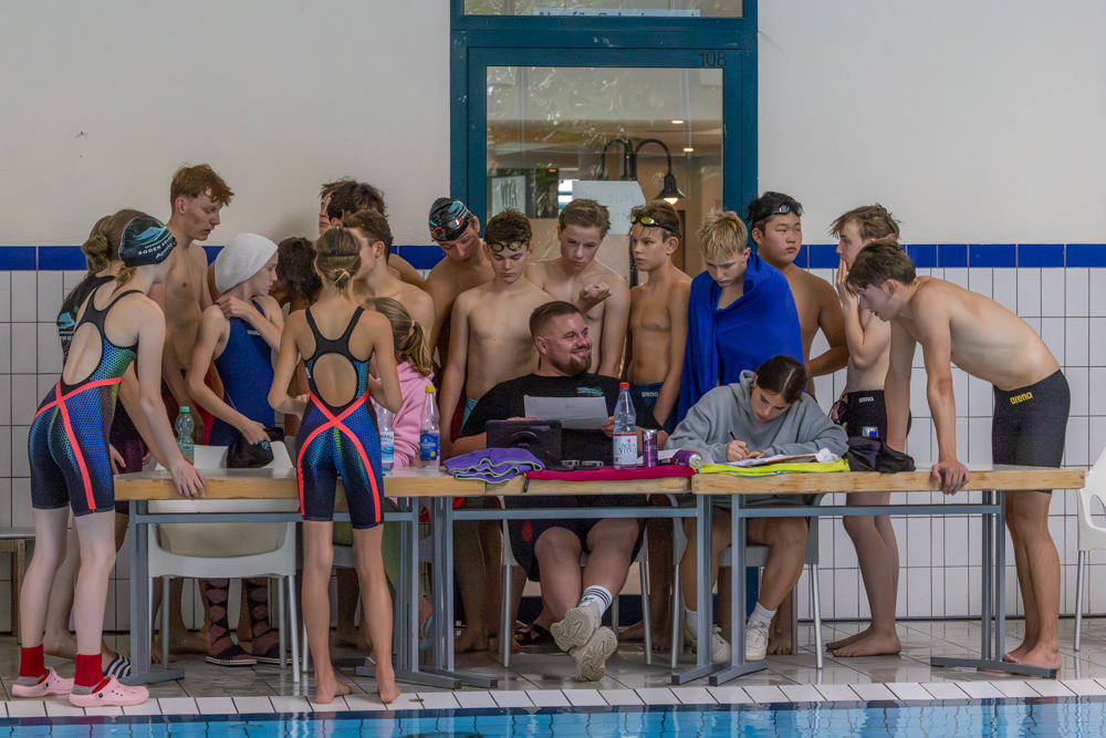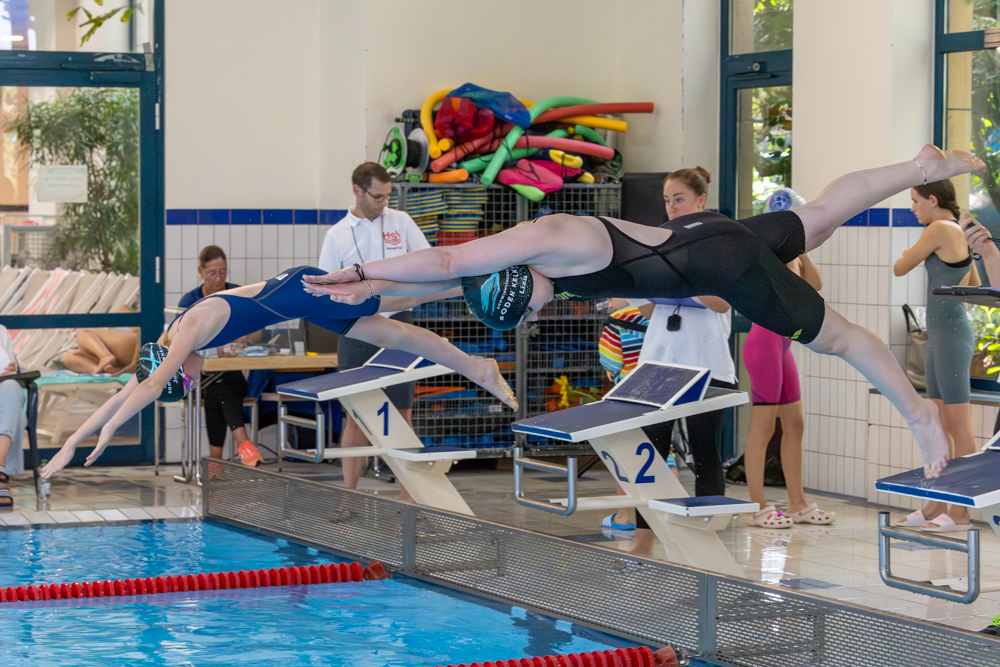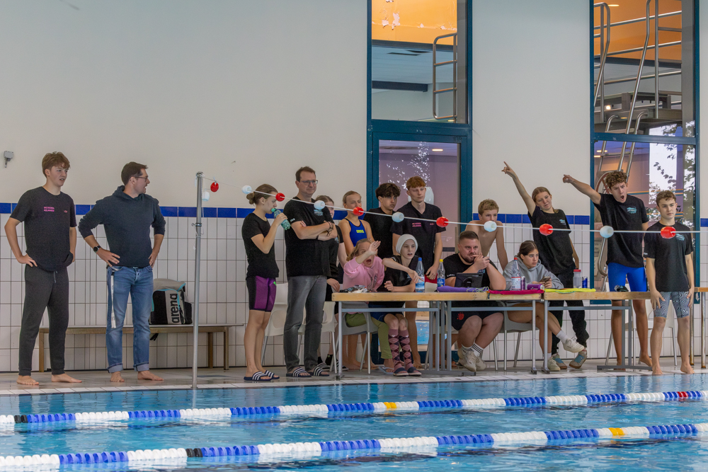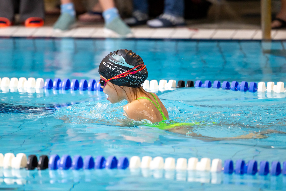Insgesamt gingen 64 Aktive der SG Soden Kelkheim an den Start, darunter auch ein paar ganz junge (Jg 2015 und jünger), die aufmerksam von den Trainer*innen Christiane Brandt und Sigi Kleemann betreut wurden. Clara Koch (Jahrgang 2018) startete als Jüngste aus unserem Team zweimal über die 25 Meter Strecken und gewann beide Male. Zudem stellte sie auch einen neuen Vereinsrekord über 25 Meter Rücken Beine auf. Auch Grace-Marlis Alterino, Kiera Cosgrove, Amalie Eich, Jonathan Elsässer, Louisa F., Timo Habets, Helena Kallwitz, Karl Lauber, Johann Schappert, Vira Veres, Lina Weisgerber, Tim Werner, David Wiederhold und Amina Zabchi sammelten wertvolle Wettkampferfahrung und viele Medaillen (10 x Gold, 11 x Silber und 10 x Bronze).