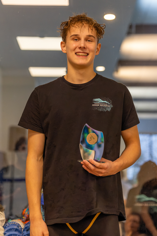 Finale der Männer ging der Sieg an die SG Soden Kelkheim. Leonard Kunz gewann in einer tollen Zeit von 1:00,12. Zudem konnte er sich über drei weitere Gold- und zwei Silbermedaillen freuen. Bei