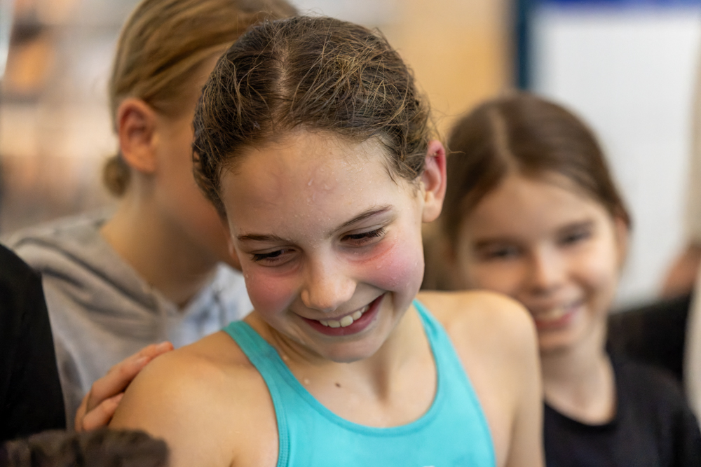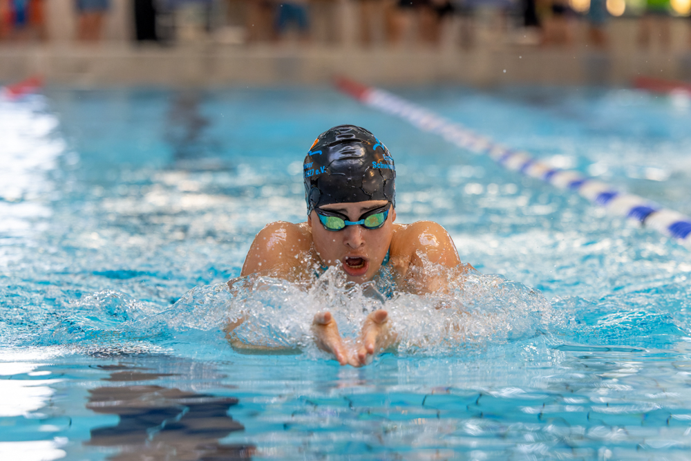 und 19 Jahren an den Start. Bei der 4x50m Brust Staffel zeigten unsere Nachwuchsschwimmer*innen, was in ihnen steckt: Die Mannschaft um Mia Cosgrove, Maja Gedeon, Jana Habets und Lena Werner