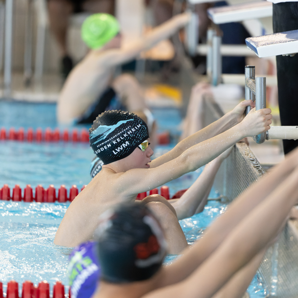 Schwimmer*innen doch schon recht voll im Startbereich. Auch hier stellte die SG Soden Kelkheim zwei Staffeln und belegte Platz 2 und 3 und musste sich nur dem SC Illingen geschlagen geben.