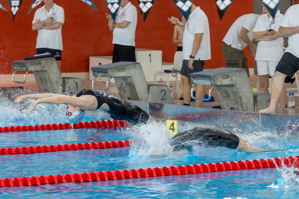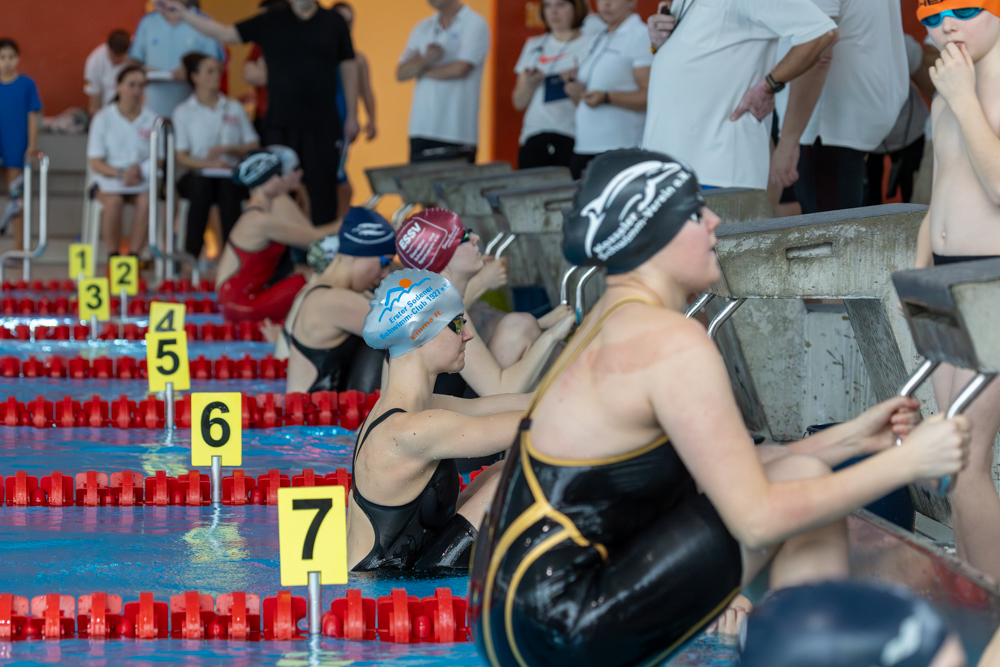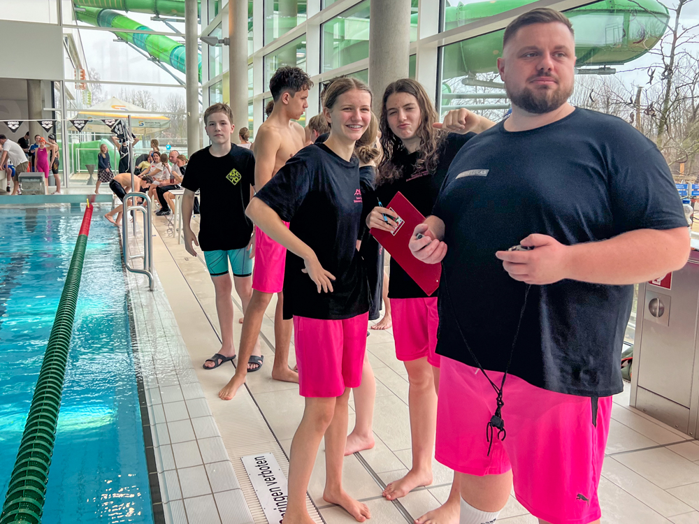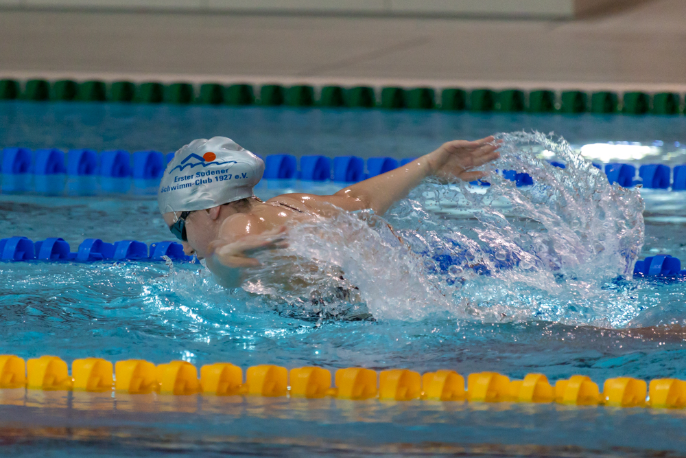 Dieser Wettkampf diente als erster Belastungstest auf der Langbahn, nachdem in den letzten Wochen im Training viele Kilometer im Wasser absolviert wurden. Trainer Lukas Müller startete also mit zehn Bad Sodener und zwei Kelkheimer Schwimmer*innen am frühen Samstagmorgen.