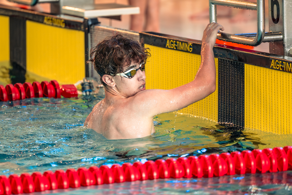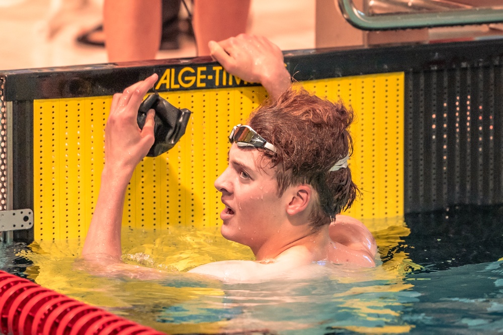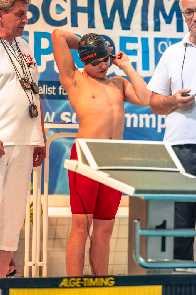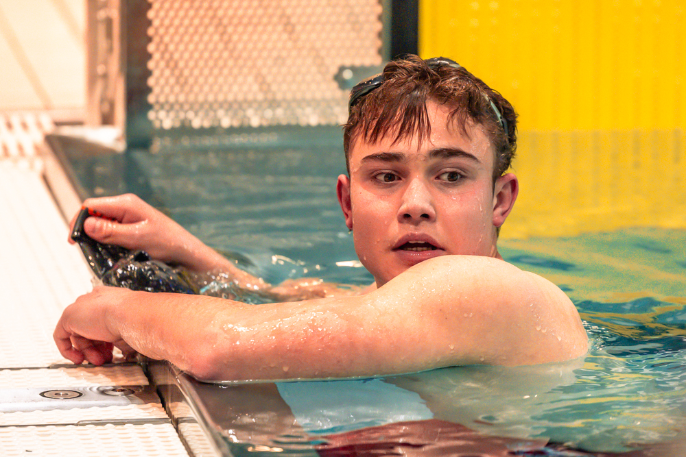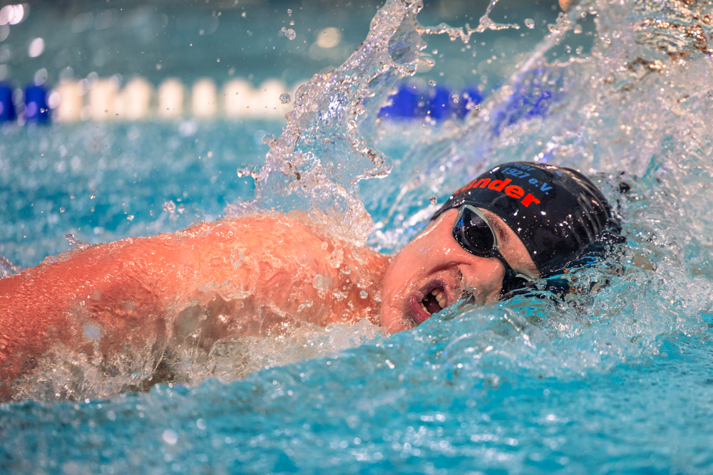 Nachdem es am Samstag dann direkt mit der nächsten Staffel weiterging (Leif, Emma, Sara und Hadrien über 4x100m Freistil), folgten für Emma Rüter, Diego Rump, Alexander Golze und Pablo Legendre der Einzelstart über 50m Brust. Einige von ihnen hatten hier neben einer guten Platzierung auch die Hoffnung auf eine Qualifikation zu den DJM Ende Mai im Hinterkopf. Diego, Alex und Pablo konnten die Anspannung in Energie umwandeln und schwammen hier fantastische Bestzeiten. Diego verbesserte sich um fast sechs Zehntel und belegte Platz acht. Damit hat er sich auch den Platz bei den Deutschen Jahrgangsmeisterschaften gesichert. Alex verbesserte sich ebenfalls um eine halbe Sekunde und belegte in einem starken Feld Platz 25. Pablo stellte seinen eigenen Vereinsrekord mit über einer Sekunde Bestzeit ein, sicherte sich Platz 5 und wird auf dieser Strecke ebenfalls bei den DJM starten. Emma konnte auf dieser Strecke ihre Leistung nicht verbessern und landete auf dem 13. Platz.