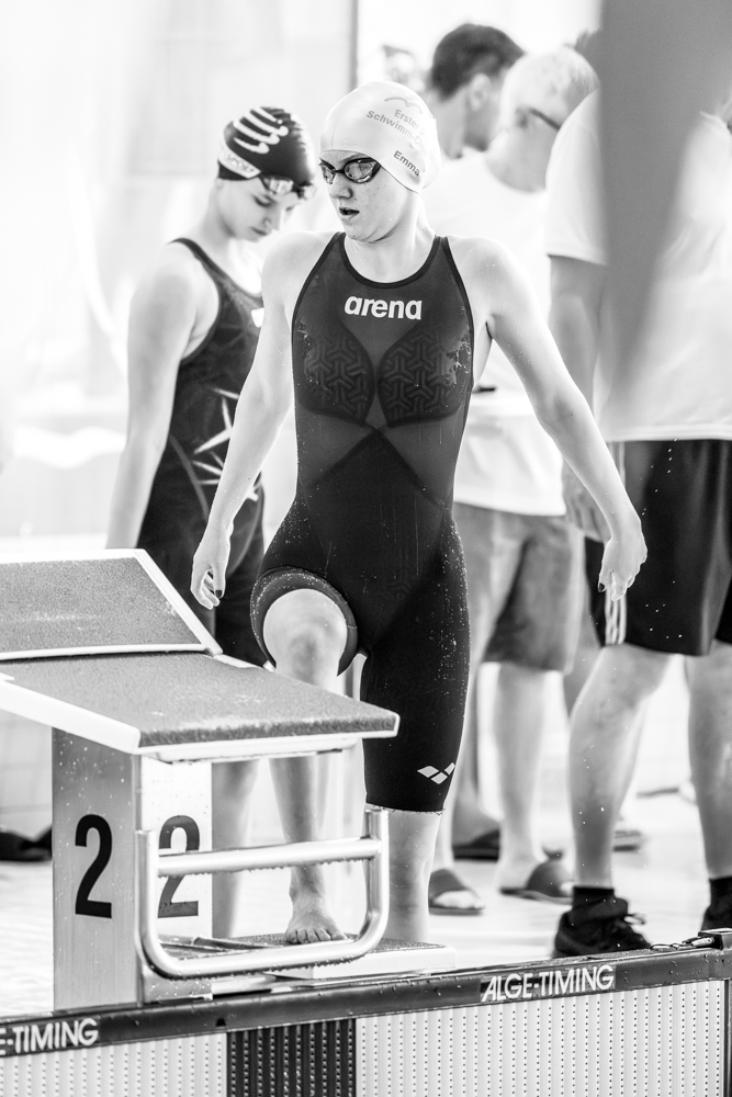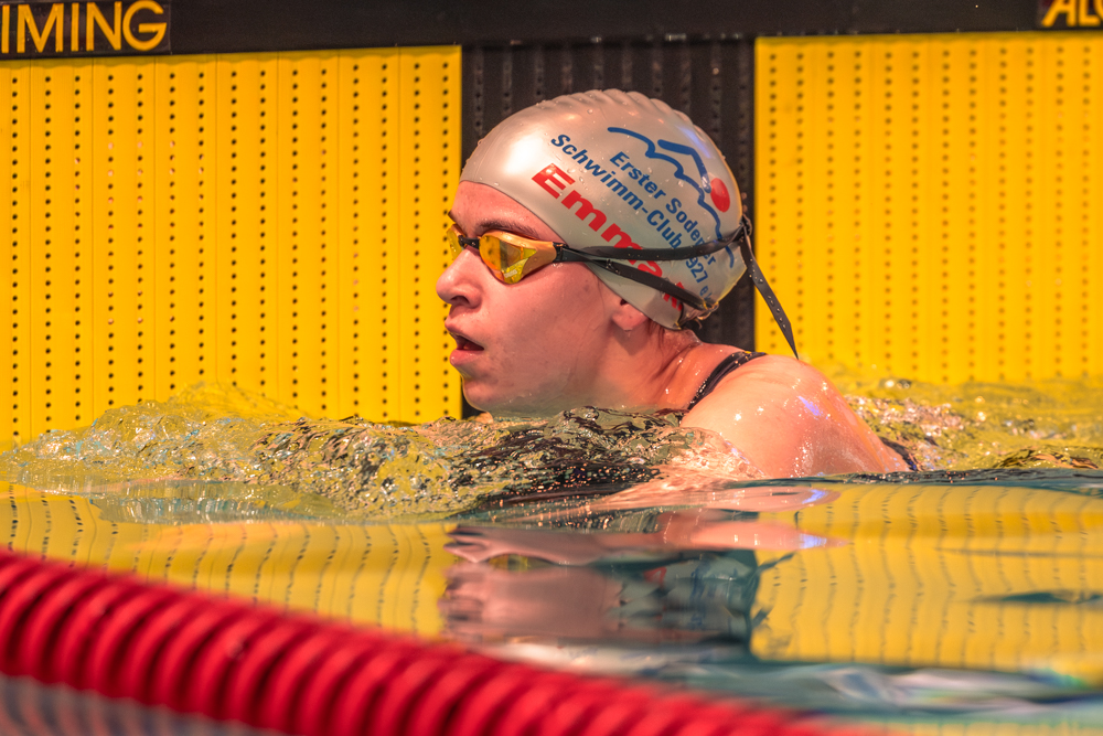 Den Anfang machte wieder Sara, die über ihre Paradelage Rücken gerne nochmal ihre Form über die 100m unter Beweis stellen wollte. Mit einer 1:11,33 gelang ihr zwar keine persönliche Bestzeit, aber mit einem Saisonrekord holte sie sich den dritten Platz. Auch Emma wollte über 100m Brust nochmal zeigen was sie kann. Sie verbesserte ihre gerade erst in Darmstadt aufgestellte Bestzeit um eine dreiviertel Sekunde, belegte damit Platz 9 und hat sich die DJM-Teilnahme erschwommen. Pablo bestätigte auf der dieser Strecke seine bisherige Leistung und kam auf Platz 8.