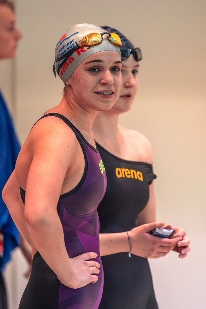 Bei den Frauen starteten Emma Rüter, Liza Wagner, Emilia Muth und Sara Fülöp. Da für keine der Schwimmerinnen diese Strecke zu ihren Lieblingsstrecken zählt, ging es hier einfach ums Dabeisein. Emma und Liza konnten hier jedoch auch beide eine Leistungssteigerung zeigen. Anschließend gingen Hadrien Legendre, Julian Koch, Florian Wiese und Leif Fuchs ins Wasser und freuten sich über dieses besondere Mannschaftserlebnis.