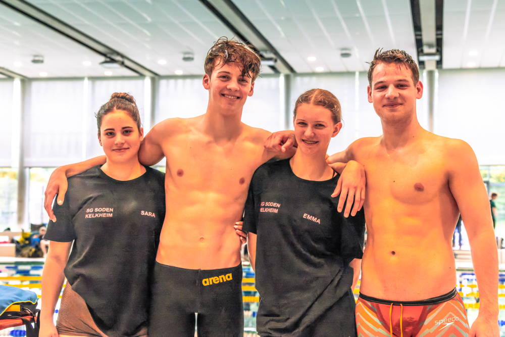 Am Ende des langen Wettkampfwochenendes stand dann noch einmal die 4x100m Lagen mixed Staffel mit Sara, Pablo, Leif und Emma an. Und auch wenn alle bereits sehr erschöpft waren, zeigten sie Kampfgeist und gaben alles.
