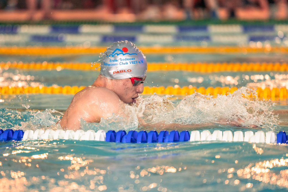 Direkt im Anschluss kamen die 50m Freistil. Eine Strecke, auf der sieben Schwimmer*innen der SG Soden Kelkheim starteten. Bei den Mädels konnten Miriam Koch, Emma Rüter und Vivien Unger leider keine Bestzeiten knacken. Luca Schuler und Julian Koch konnten ihre aktuelle Form bestätigen, auch wenn sie sich mehr vorgenommen hatten. Für Alex und Leif lief es super und beide konnten sich nochmals verbessern. Leif kam mit einer Zeit von erstmals unter 26 Sekunden auf den siebten Platz.