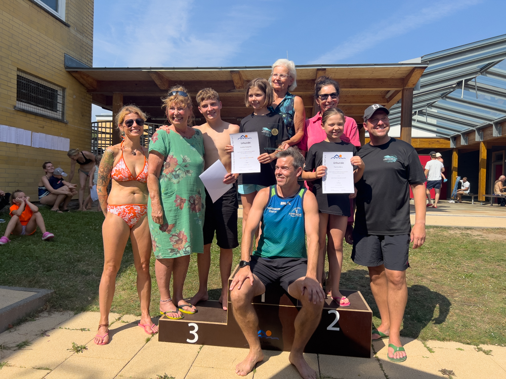 Höhepunkt der Veranstaltung war einmal mehr die Familienstaffel. Seit mehr als 35 Jahren sind die Familienstaffeln schon eine lange Tradition um die schnellste Familie Bad Sodens sowie um die begehrten MTZ-Geschenkgutscheine. Dieses Rennen ist immer eine große Motivation für die Kinder, im Rahmen der Familie für eine Sache zu schwimmen. Es siegte Familie Wiese (1:45.94 Min.), gefolgt von Familie Koch (1:47.15 Min.) und Dritter wurde Familie Kunz (1:55.25 Min.).