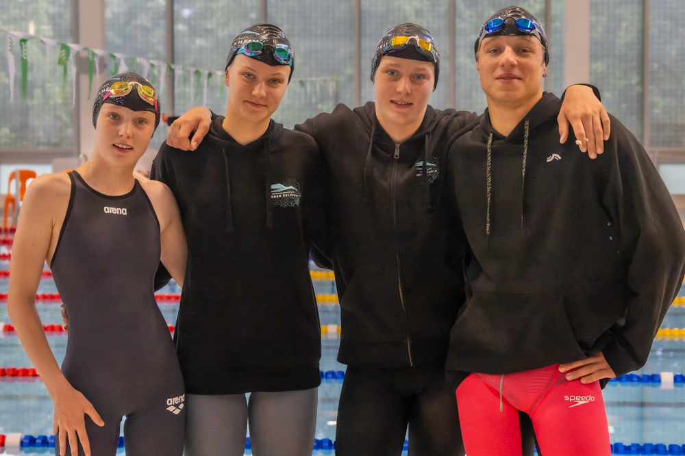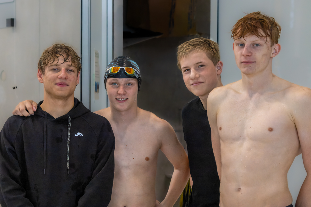 als Startschwimmer die 100m Rücken, es folgte Ben auf der Bruststrecke, der dann von Pablo mit Schmetterling abgelöst wurde. Den Schlussspurt absolvierte Alex in Freistil.
