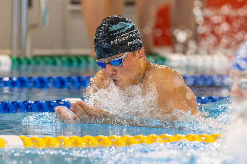 über die 50m Brust Strecke ins Becken. Ben, Alexander und Diego schwammen jeweils persönliche Bestzeiten. Ben belegte damit einen hervorragenden Platz vier in der Jahrgangswertung, Diego kam auf