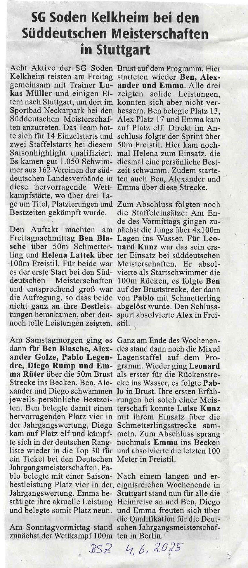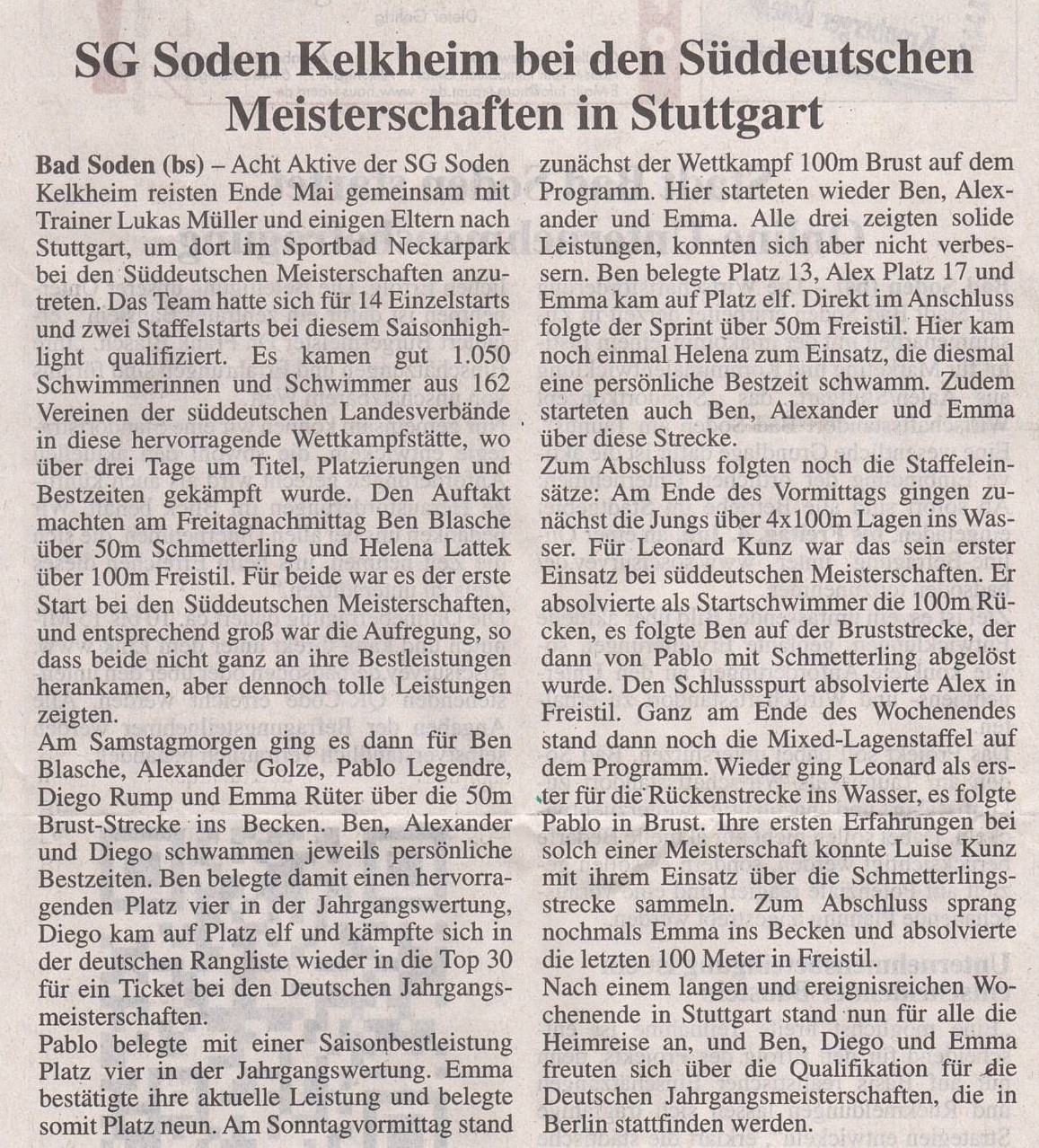 SG Soden Kelkheim bei den Süddeutschen Meisterschaften in