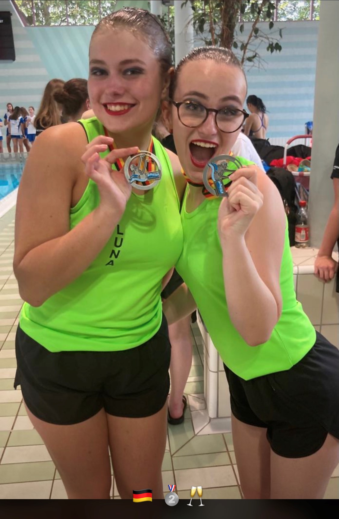 Lea Kittinger und Hanna Kinga Bekesi konnten ihren Erfolg von den Süddeutschen Meisterschaften vor fünf Wochen in Stuttgart wiederholen und sind nun auch auf nationaler Ebene das beste Duett in der Juniorenklasse. Sie ließen wiederholt die Paare aus Süddeutschland und nun auch die Konkurrenz aus Berlin und Flensburg hinter sich und schwammen unangefochten zum Titelgewinn.