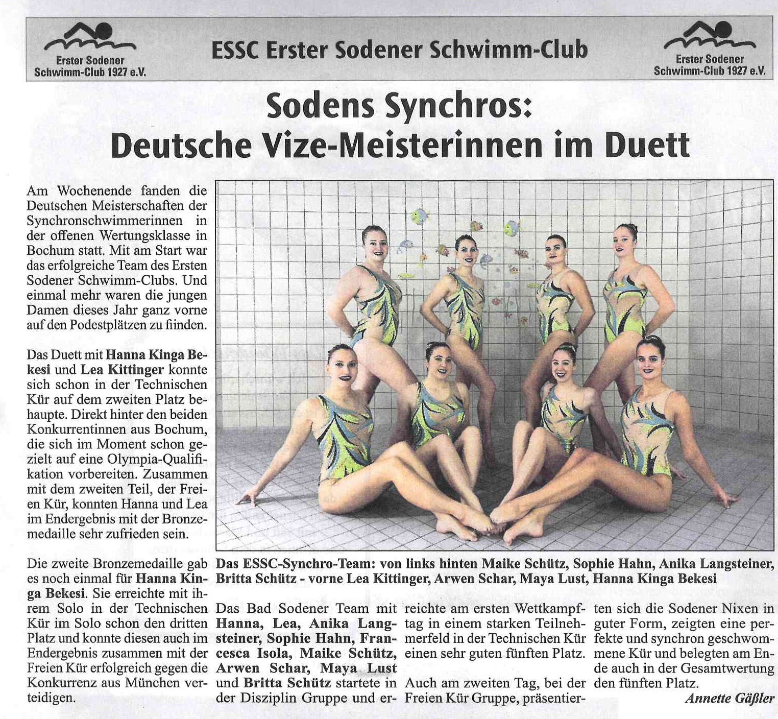 ESSC-Synchros sind Deutsche Vize-Meisterinnen im Duett