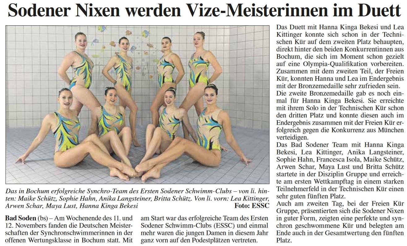 Am Wochenende 11./12. November 2023 fanden die Deutschen Meisterschaften der Synchronschwimmerinnen in der offenen Wertungsklasse in Bochum statt.