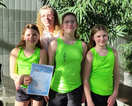 In der jüngeren Altersklasse 10 bis 12 Jahre starteten unsere Nachwuchsschwimmerinnen Juli Bäßler, Daniela Scherer und Marie