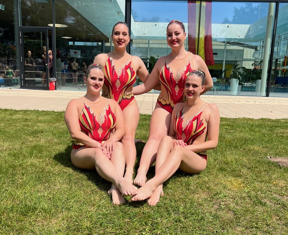 Das Junioren-Team der Sodener Synchros gewann die weiteren „Goldenen“. Die jungen Damen der Altersklasse 20-25 Jahre starteten im Duett und im Team.