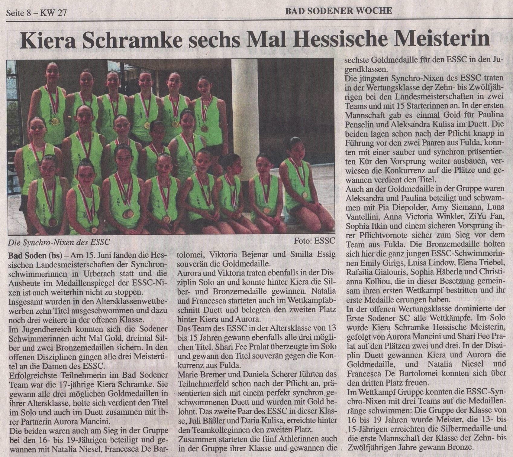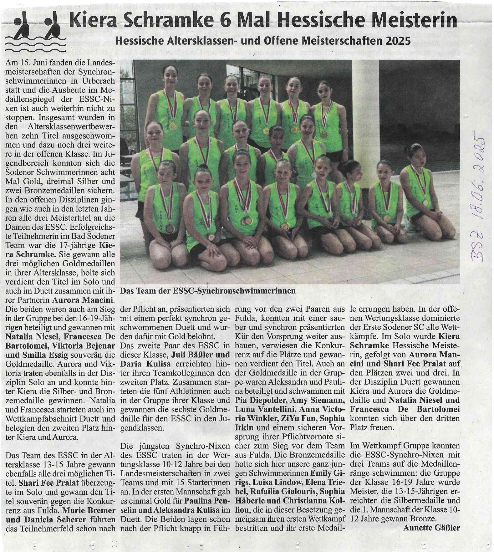 Am 15. Juni fanden die Landesmeisterschaften der Synchronschwimmerinnen in Urberach statt und die Ausbeute im Medaillenspiegel der ESSC-Nixen ist auch weiterhin nicht zu stoppen.