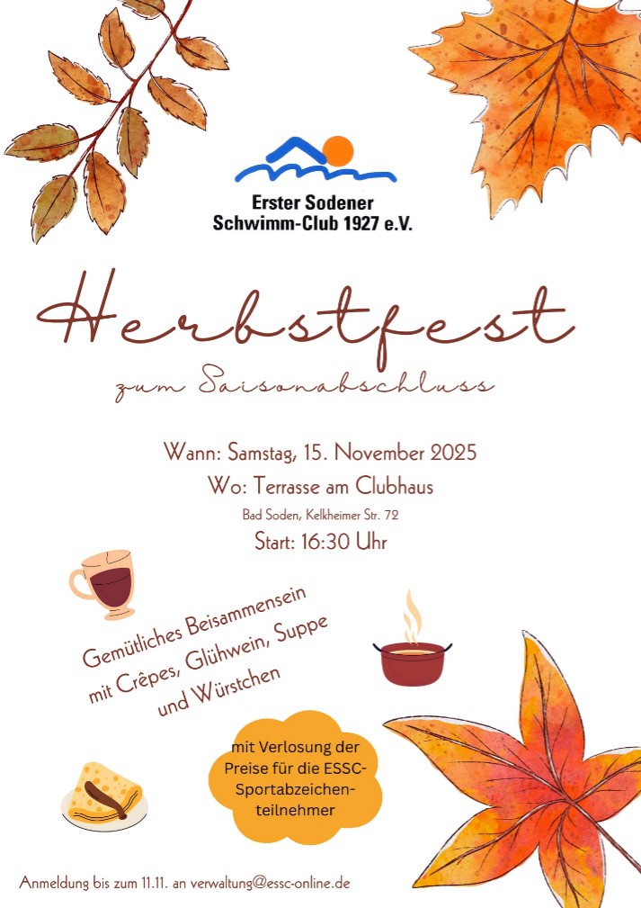 Die diesjährigen Stadtmeisterschaften im Schwimmen und Wasserrutschen richtete der ESSC am 31. August 2025 im FreiBadSoden aus. Es gab es viele spannende Wettbewerbe in 141 Einzelmeldungen, 11 Familien-staffeln und 5 Generationenstaffeln. Mehr...