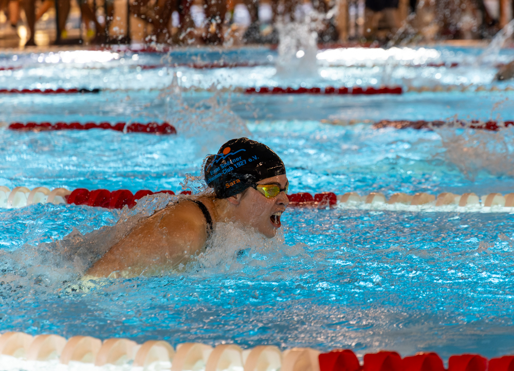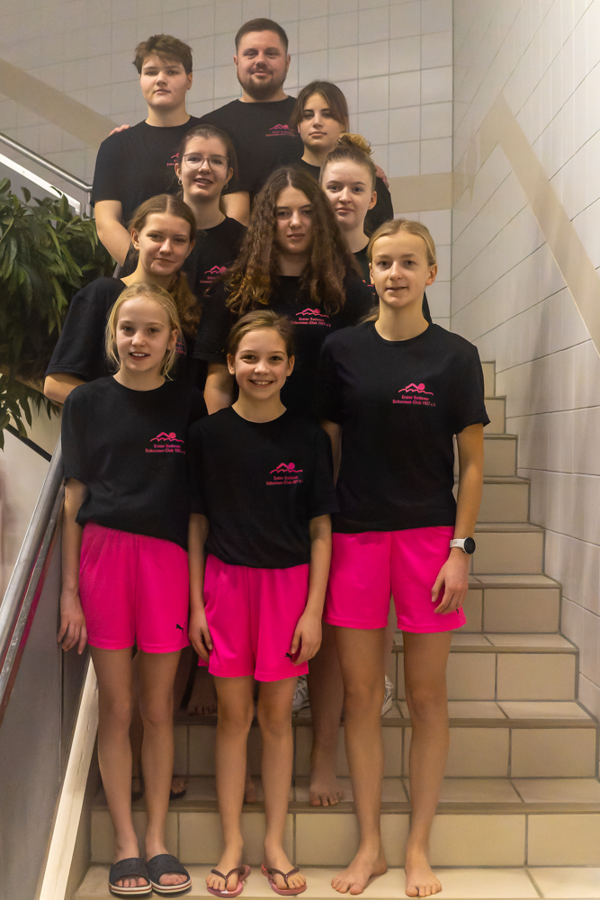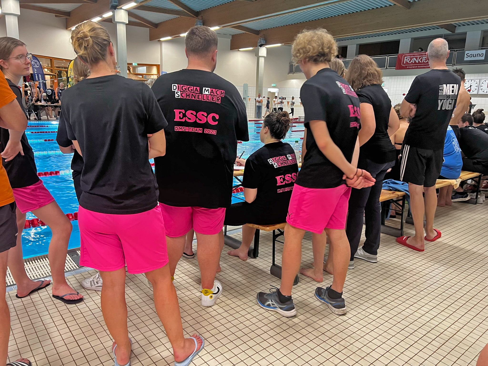12.484 Punkten und damit 500 Punkte weniger als beim letzten Durchgang reichten leider nicht zum Klassenerhalt. Bei der Deutschen Mannschafts-meisterschaften (DMS), die von Bezirksliga bis 1. Bundesliga geschwommen werden, muss das komplette Wettkampfprogramm (50m bis 800/1500m) zweimal durchgeschwommen werden. Jeder Aktive darf max. 5mal an den Start gehen. Das ESSC-Damenteam ging im Hallenbad in Frankfurt-Höchst mit 9 Aktiven an den Start und musste hierbei auch krankheitsbedingte Ausfälle kompensieren.