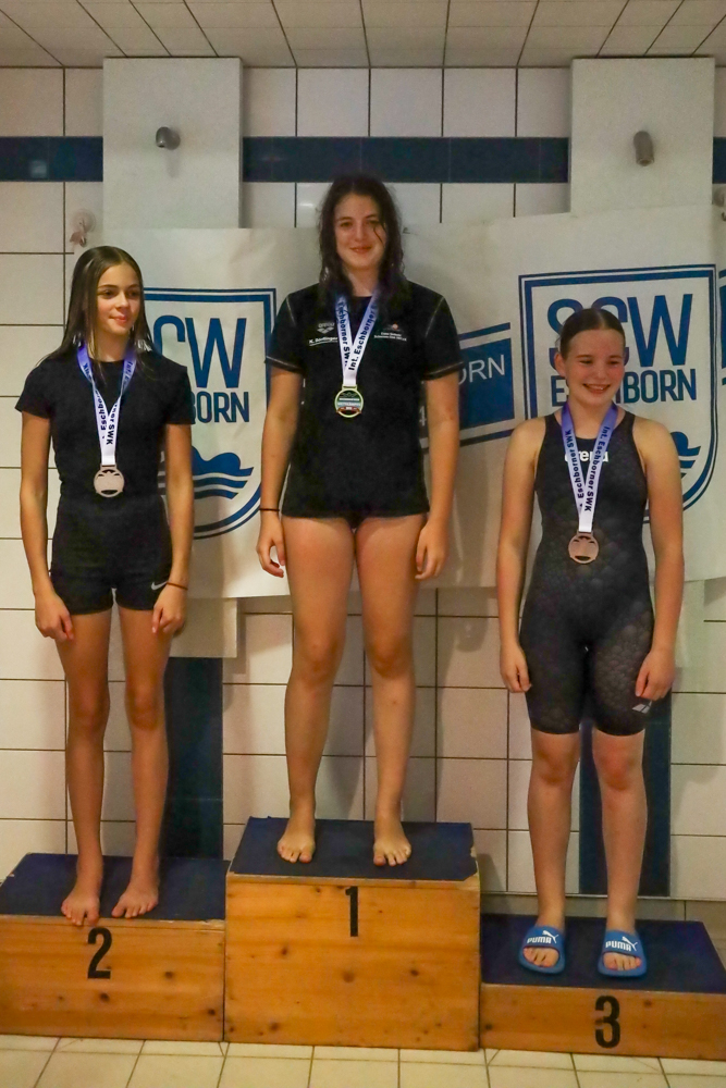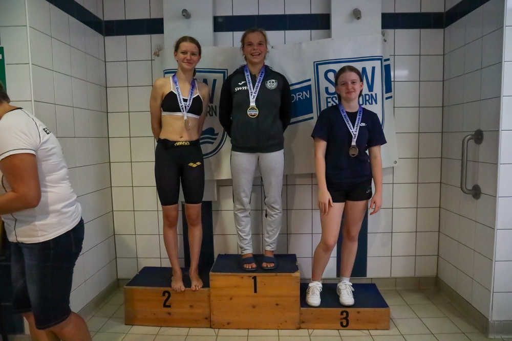 Insgesamt konnten unsere Aktiven mit 197 Starts 171 persönliche Bestzeiten (87%) sammeln. Mit 65 Medaillen (18x Gold, 22 x Silber und 25 x Bronze) belegte der ESSC den 4. Rang im Medaillenspiegel. Erfolgreichste Schwimmerin an diesem Wochenende war Emma Rüter, der mit jedem Start ein Podiumsplatz (3x Gold, 4x Silber und 1x Bronze) sowie sieben persönliche Bestzeiten gelangen. Auch Hannah Schappert erzielte bei allen Starts eine Medaille. Sie konnte sich über vier Gold- und drei Bronzemedaillen sowie 5 persönliche Bestzeiten freuen.