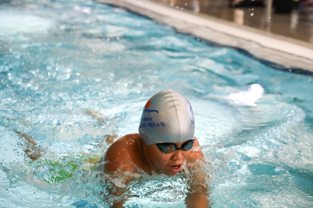 Besonderes Highlight waren die 25 m Strecken für die ganz jungen Talente, die größtenteils ihre ersten Erfahrungen im Wettkampfschwimmen machen durften. So auch für Ben Arenz vom ESSC, der mit seinen sechs Jahren gleich zweimal startete und eine Gold- und eine Bronzemedaille gewann.