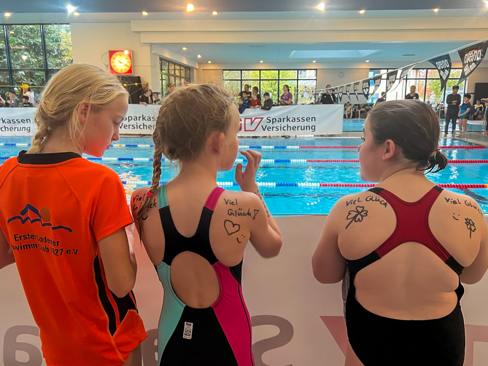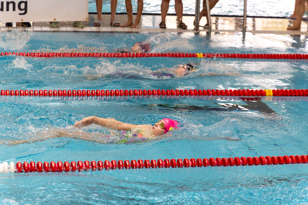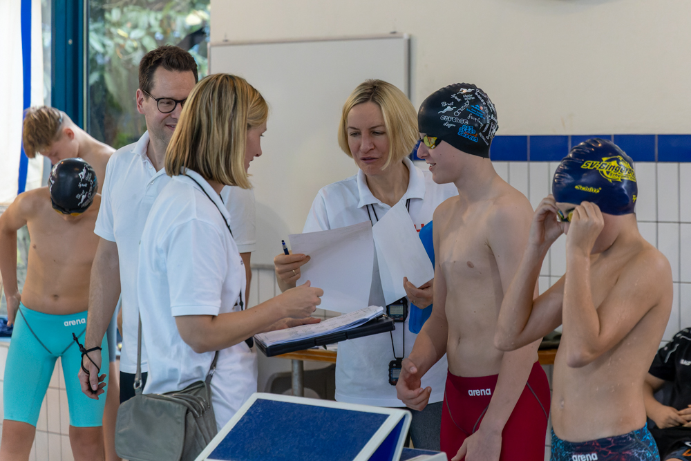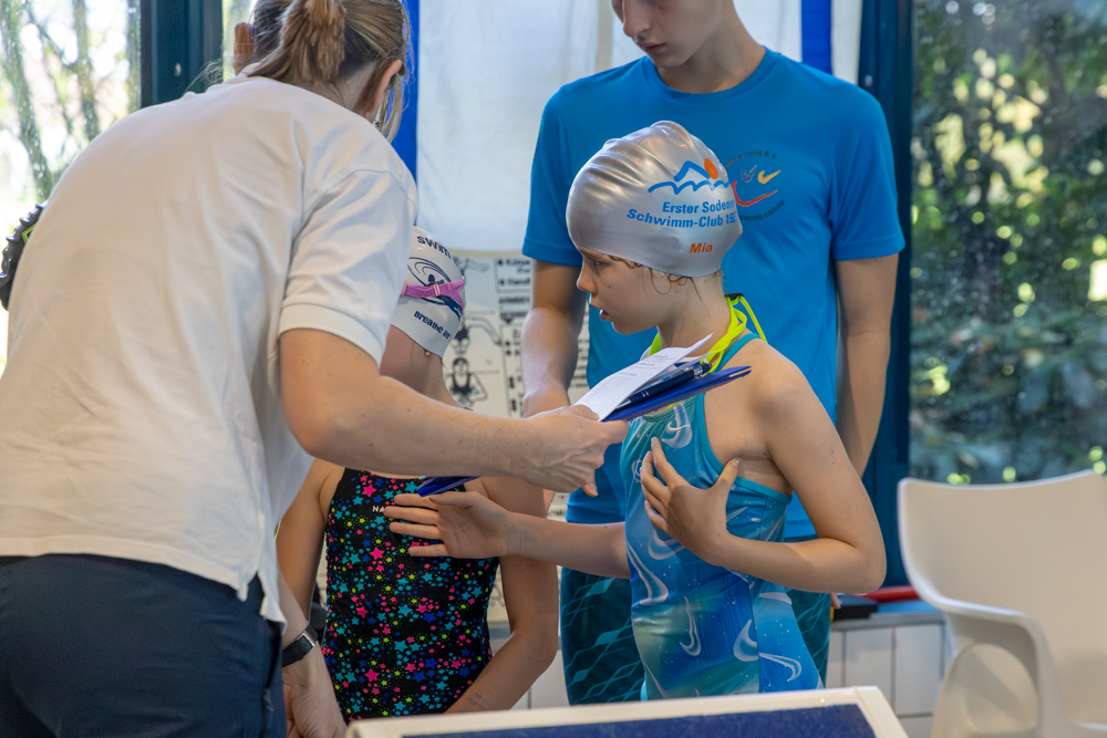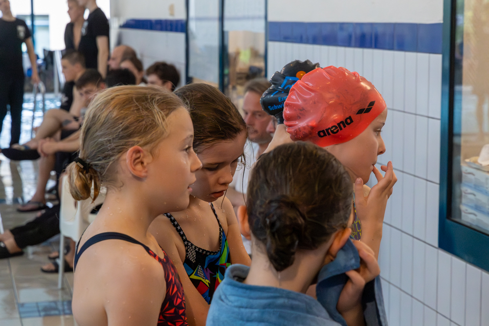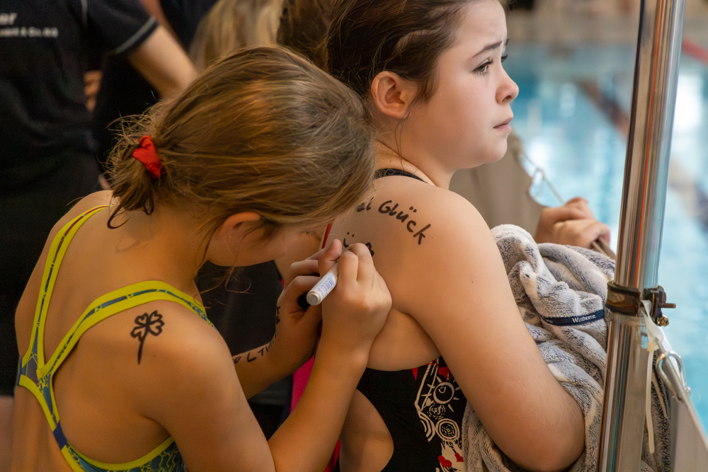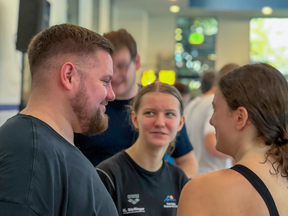 Aufregung verbunden, da die Eltern nur von draußen zuschauen durften. Zum Glück haben sich neben den Betreuer*innen auch die erfahreneren Schwimmer*innen liebevoll gekümmert und geholfen, wenn