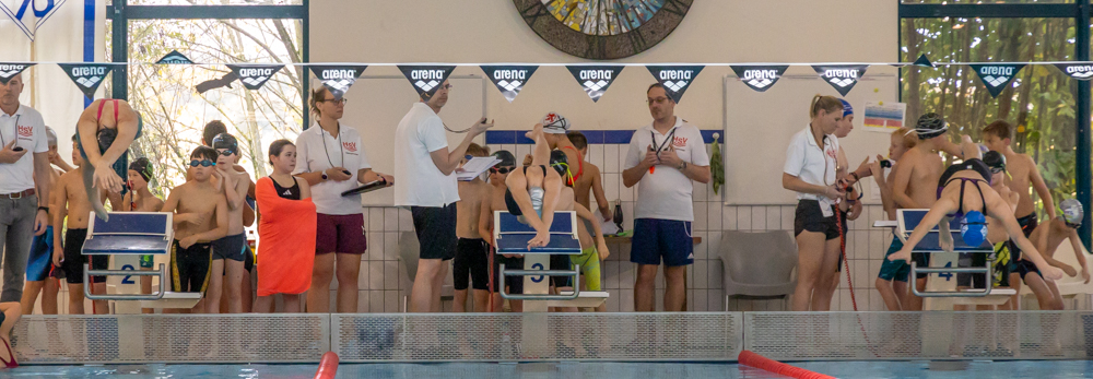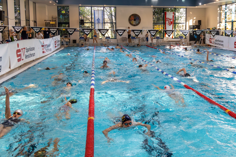 Weihnachtsschwimmen in die Rhein-Main-Therme nach Hofheim ein. Elf Vereine folgten der Einladung und mit insgesamt etwas mehr als 1000 Starts konnte der Wettkampf in angenehmer Atmosphäre