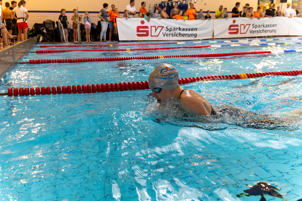 Bestzeiten. Zudem schafften acht unserer Sportler*innen den Einzug ins (offene) Finale über 100m Brust bzw. 100m Freistil. Hier wurden sie bei angeheizter Stimmung von allen Vereinskamerad*innen
