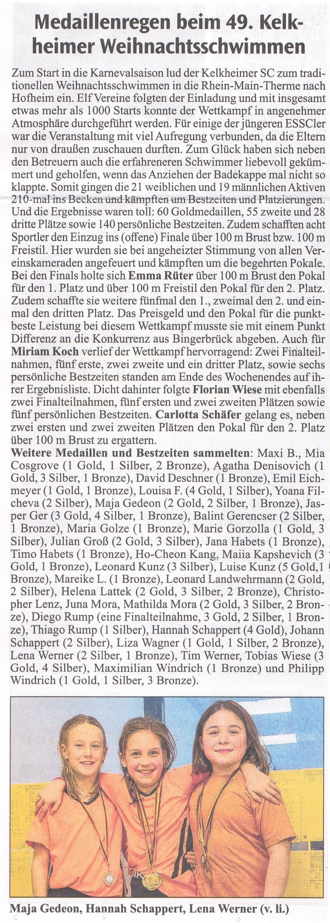Medaillenregen beim 49. Kelkheimer Weihnachtsschwimmen