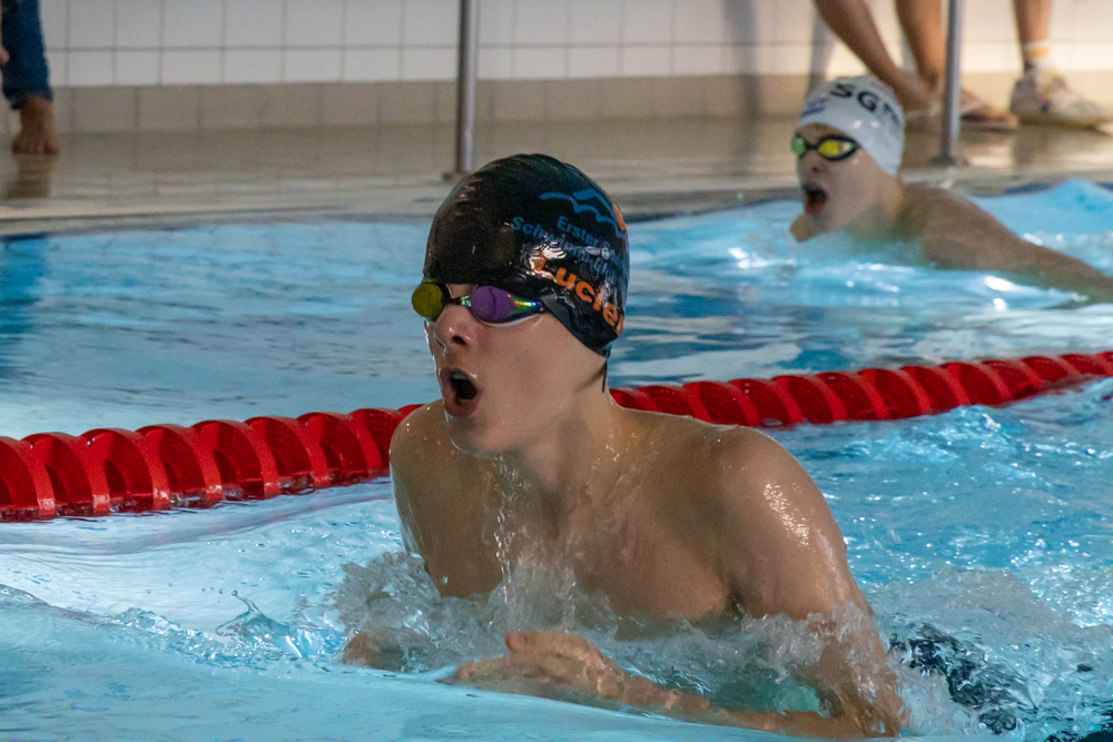 Am Samstag gingen 15 Schwimmer*innen der älteren Jahrgänge (2009 und älter) für den ESSC ins Wasser. Bei insgesamt knapp 870 Meldungen war in der Halle ausreichend Platz und eine gute Stimmung. Mit knapp 60 Starts erschwammen sie sich 35 persönliche Bestzeiten und elf Podiumsplätze. Erfolgreichste Schwimmer waren dabei Alexander Golze (je einmal 1., 2. und 3. Platz, sowie fünf persönliche Bestzeiten bei fünf Starts) und Julian Koch (zweimal 2. und zweimal 3. Platz, sowie drei persönliche Bestzeiten).