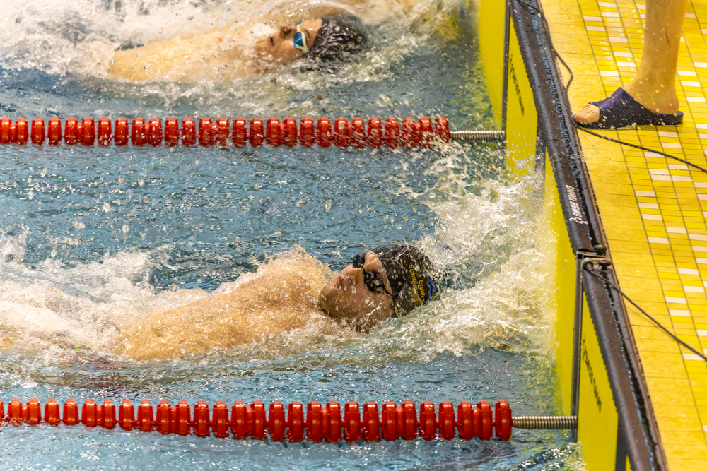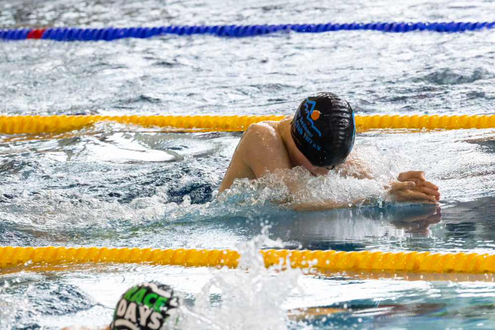 persönliche Bestzeit über 50m Brust am Sonntag gleich zweimal verbessern. Im Vorlauf schlug er mit 2,8 Sekunden schneller als gemeldet an. Damit sicherte er sich die Teilnahme am Finallauf.