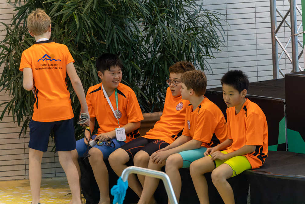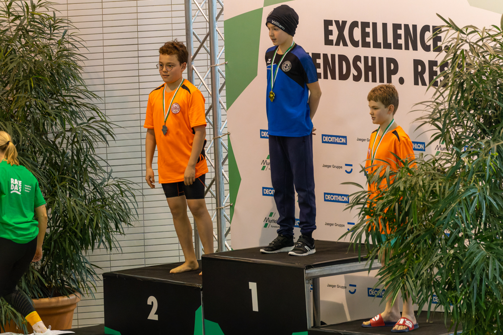 Auch Yun Joo (2011) schaffte es an diesem Wochenende zweimal auf das Siegertreppchen. Über 100m Freistil erreichte er den zweiten Platz und den dritten Platz über 200m Brust. Auf der 200m Schmetterling Strecke standen Emil Eichmeyer (Silber) und Tobias Wiese (Bronze) im Jahrgang 2011 gemeinsam auf dem Podest. Bei unseren jüngsten Wettkampfteilnehmer*innen erreichten Hannah Schappert und Julius Koch (beide Jg. 2013) über die 100m Schmetterling jeweils den zweiten Platz. Auf der Kurzstrecke (50m) erkämpfte sich Ming Yu Wang in Brustlage den dritten Platz. Bei den älteren Jahrgängen gewann Julian Koch (2008) in der Jugend B über 200m Rücken ebenfalls die Bronzemedaille.