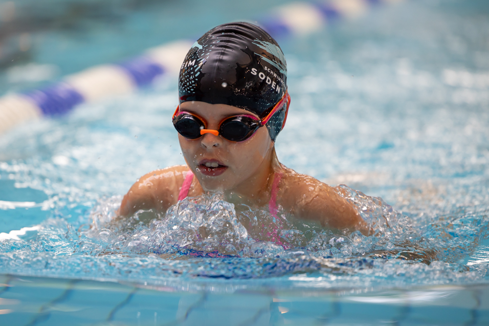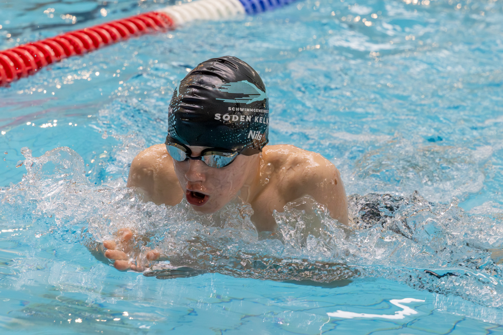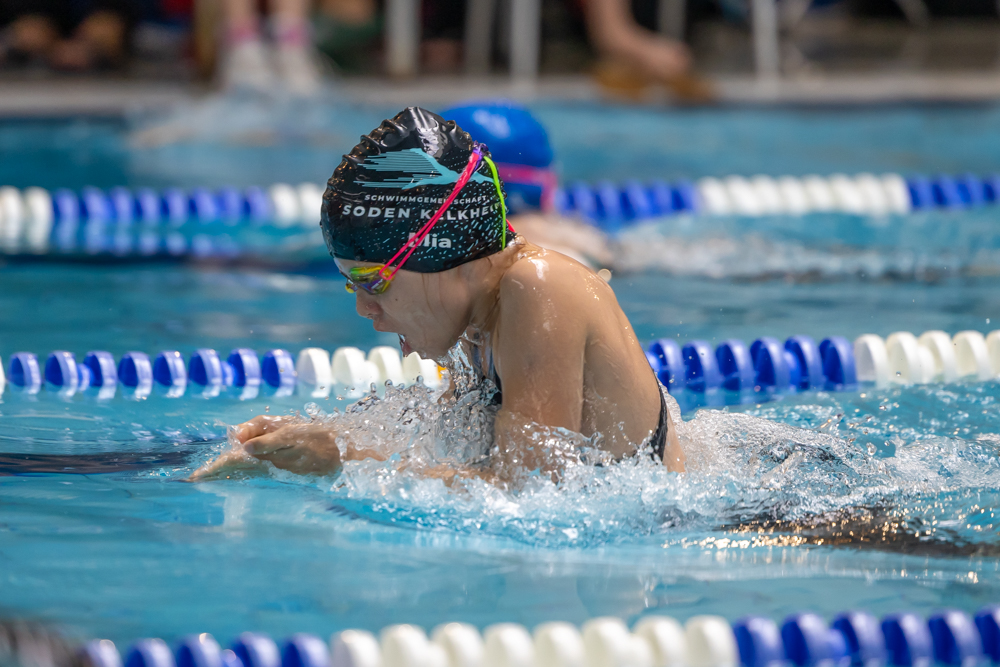 Insgesamt gingen 64 Aktive der SG Soden Kelkheim an den Start, darunter auch ein paar ganz junge (Jg 2015 und jünger), die aufmerksam von den Trainer*innen Christiane Brandt und Sigi Kleemann betreut wurden. Clara Koch (Jahrgang 2018) startete als Jüngste aus unserem Team zweimal über die 25 Meter Strecken und gewann beide Male. Zudem stellte sie auch einen neuen Vereinsrekord über 25 Meter Rücken Beine auf. Auch Grace-Marlis Alterino, Kiera Cosgrove, Amalie Eich, Jonathan Elsässer, Louisa F., Timo Habets, Helena Kallwitz, Karl Lauber, Johann Schappert, Vira Veres, Lina Weisgerber, Tim Werner, David Wiederhold und Amina Zabchi sammelten wertvolle Wettkampferfahrung und viele Medaillen (10 x Gold, 11 x Silber und 10 x Bronze).