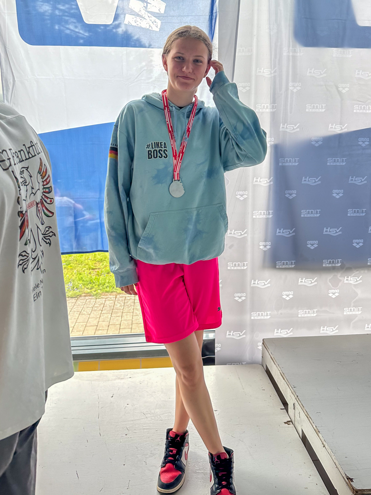 Hannah Schappert erreichte zweimal das Treppchen: Über 200m Lagen erreichte sie die Bronzemedaille und ganz am Ende des zweitägigen Wettkampfes schaffte sie es über die 200m Schmetterling nochmal all ihre Kräfte zu mobilisieren und gewann so den Vize-Titel der Hessischen Langbahnmeisterschaften im Jahrgang 2013. Über 200m Freistil verbesserte sie ihre persönliche Bestzeit um über zwei Sekunden und verpasste nur knapp mit nur einer halben Sekunde Rückstand das Treppchen.
