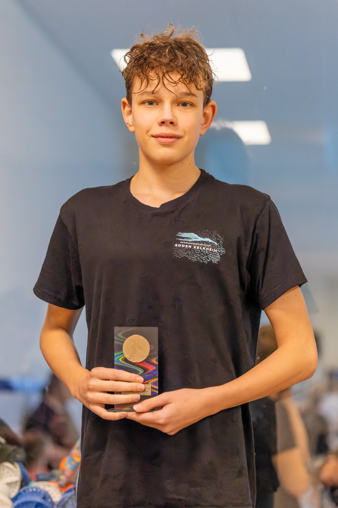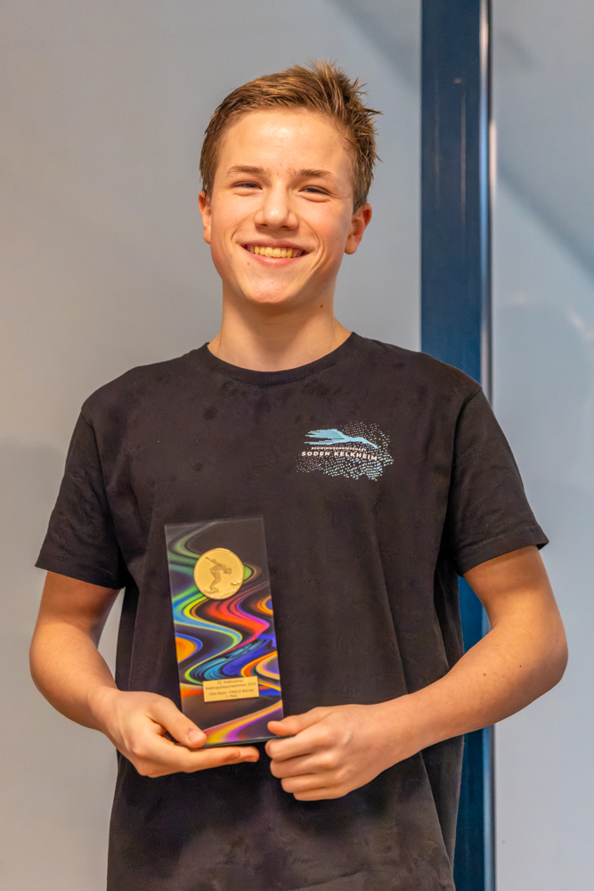 Finale der Männer ging der Sieg an die SG Soden Kelkheim. Leonard Kunz gewann in einer tollen Zeit von 1:00,12. Zudem konnte er sich über drei weitere Gold- und zwei Silbermedaillen freuen. Bei