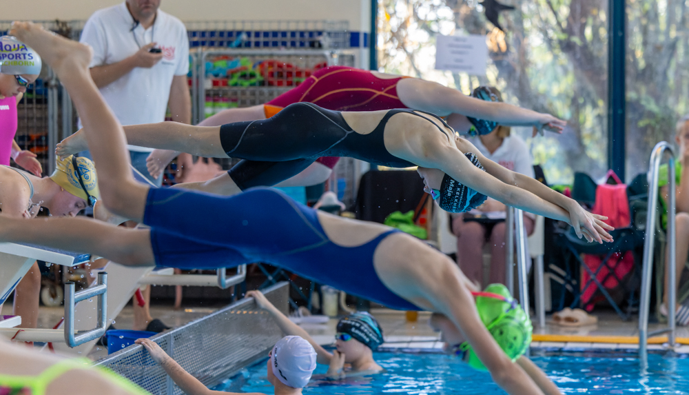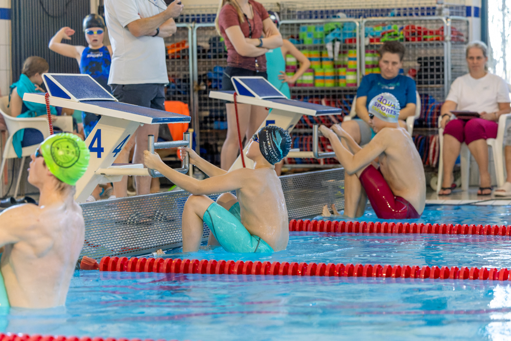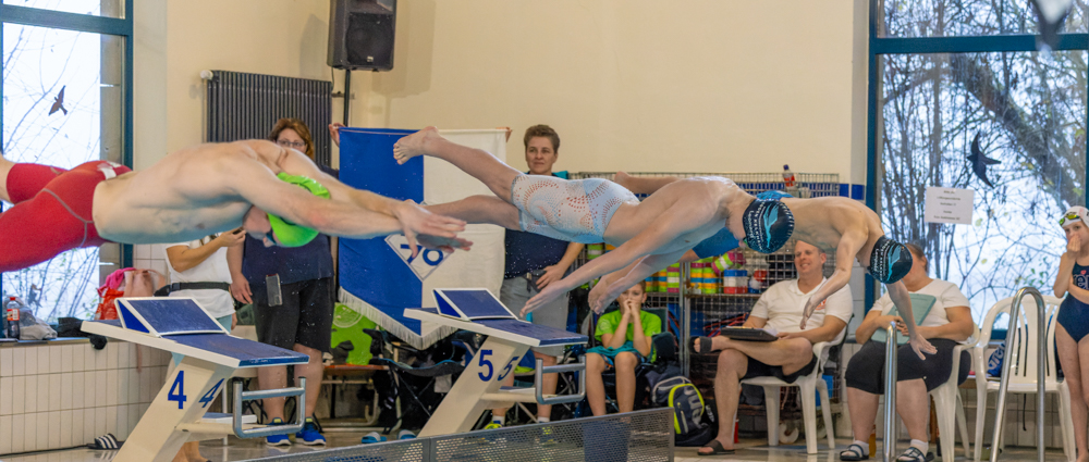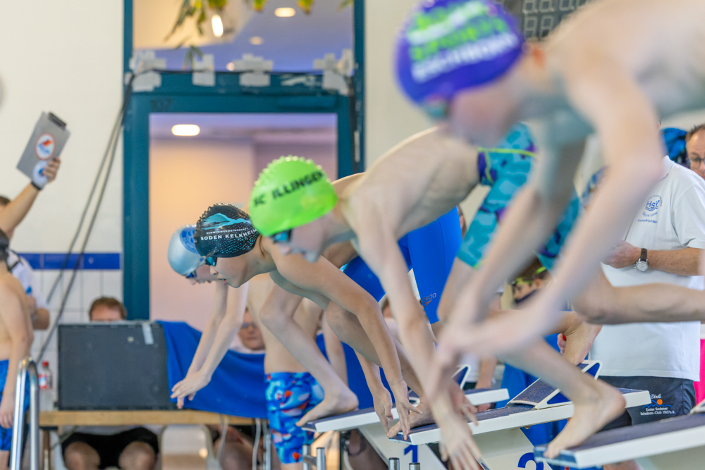Schwimmer*innen doch schon recht voll im Startbereich. Auch hier stellte die SG Soden Kelkheim zwei Staffeln und belegte Platz 2 und 3 und musste sich nur dem SC Illingen geschlagen geben.