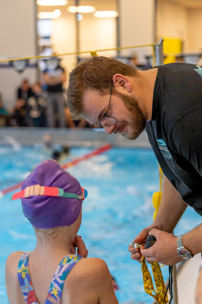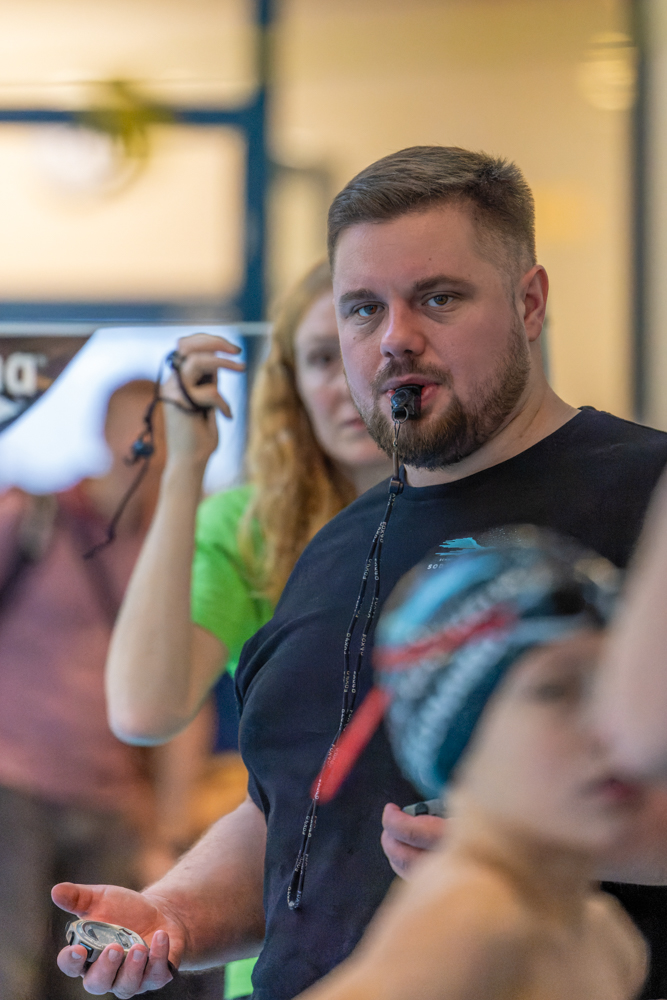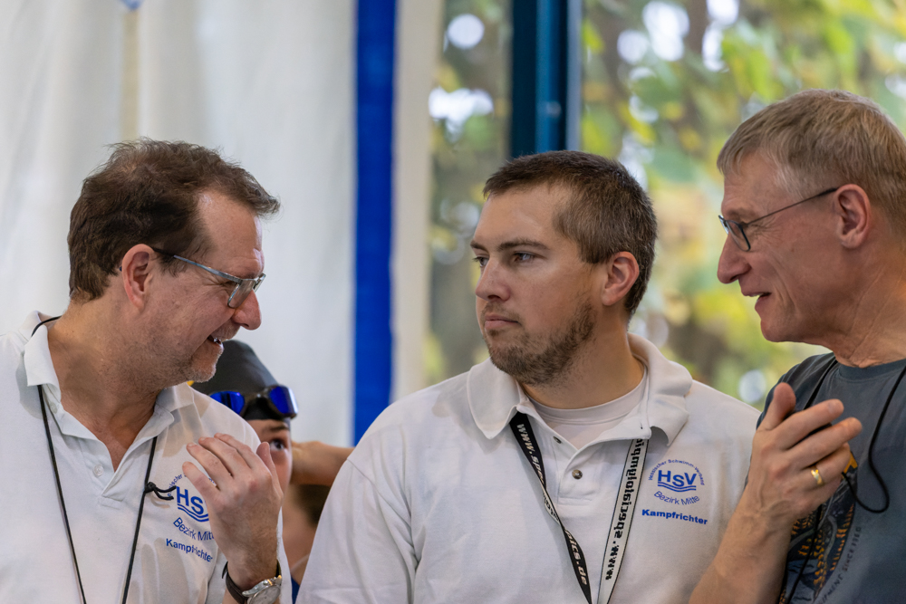 Markgraf) den dritten Platz. Besonders hoch her ging es bei der 12x50m Mixed-Lagenstaffel, die auch für die Zeitnehmer eine besondere Herausforderung darstellt, denn da wird es bei so vielen