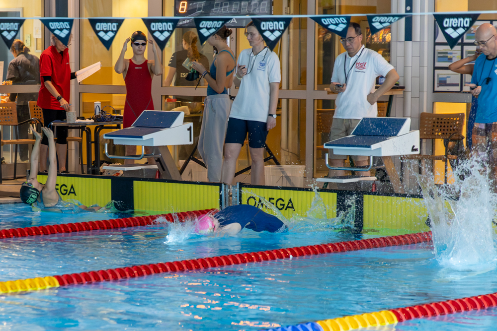 Am 20. und 21. Januar standen die 46. Internationalen Eschborner Schwimmwettkämpfe im Kalender. In entspannter Atmosphäre starteten 29 ESSCler*innen als einer von elf Vereinen insgesamt 139mal auf der Kurzbahn im Wiesenbad Eschborn. Auch wenn der Wunsch von Trainer Frank, einmal ganz ohne Disqualifikationen einen Wettkampf zu bestreiten, noch nicht in Erfüllung ging, konnte er sich zusammen mit den beiden anderen Trainern Ivan und Moritz über tolle Leistungen und Platzierungen freuen.