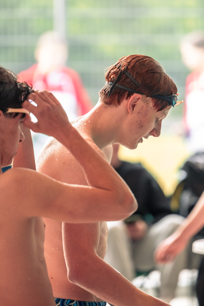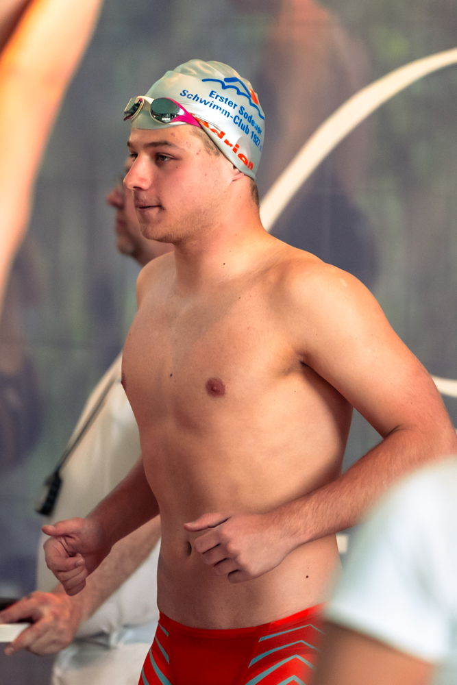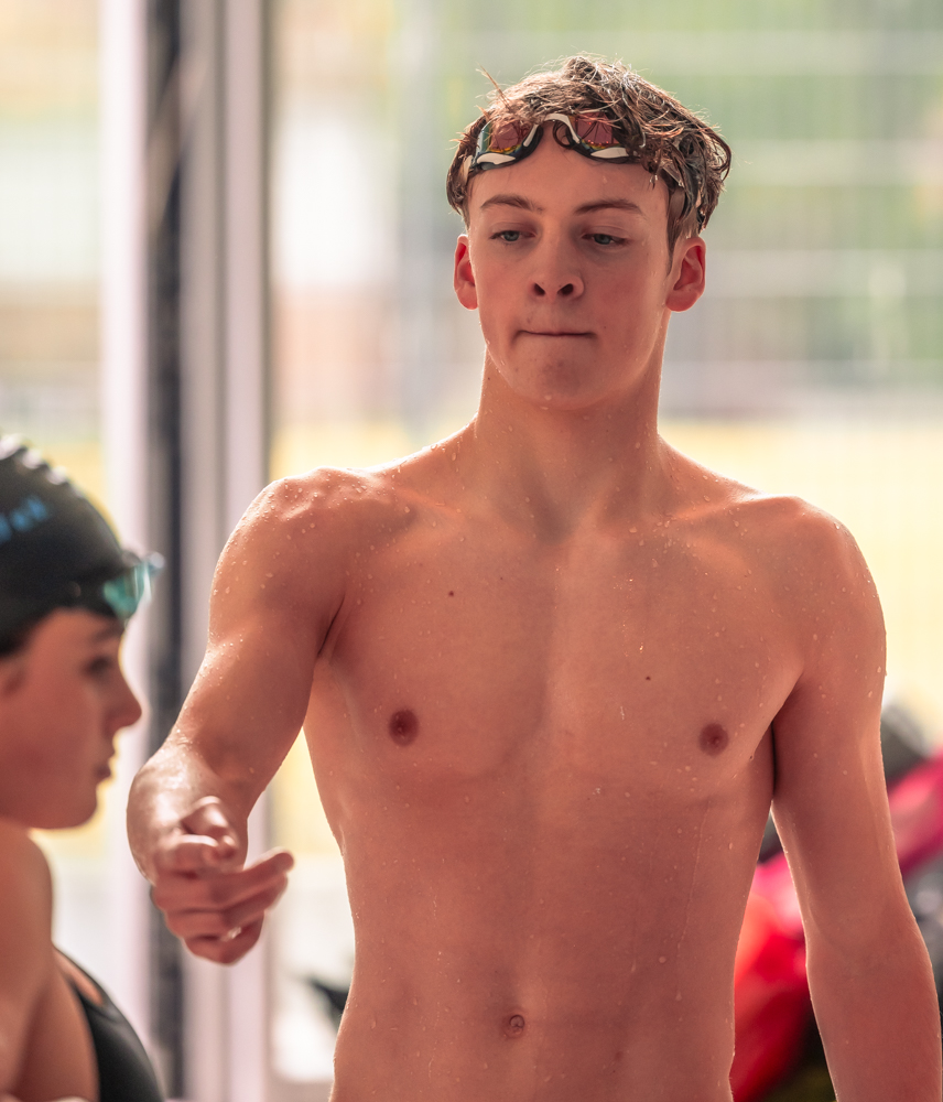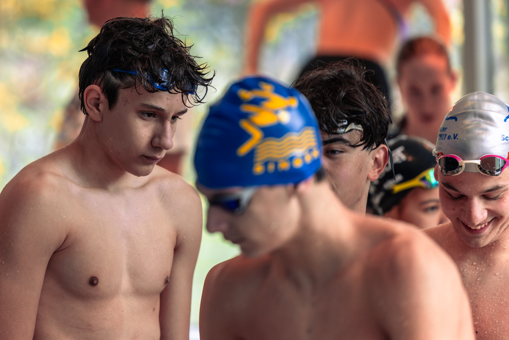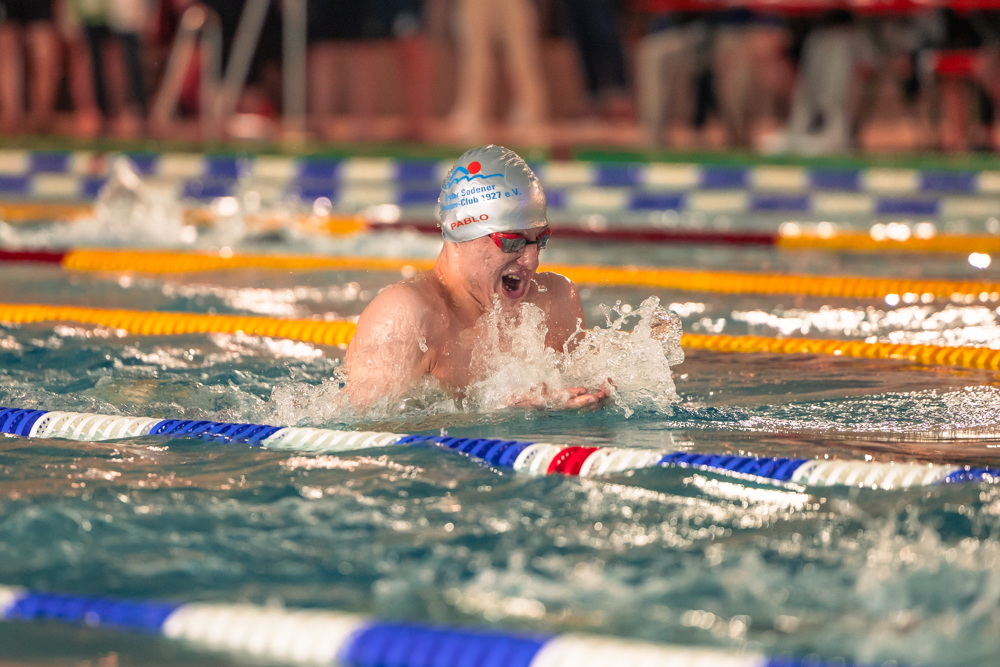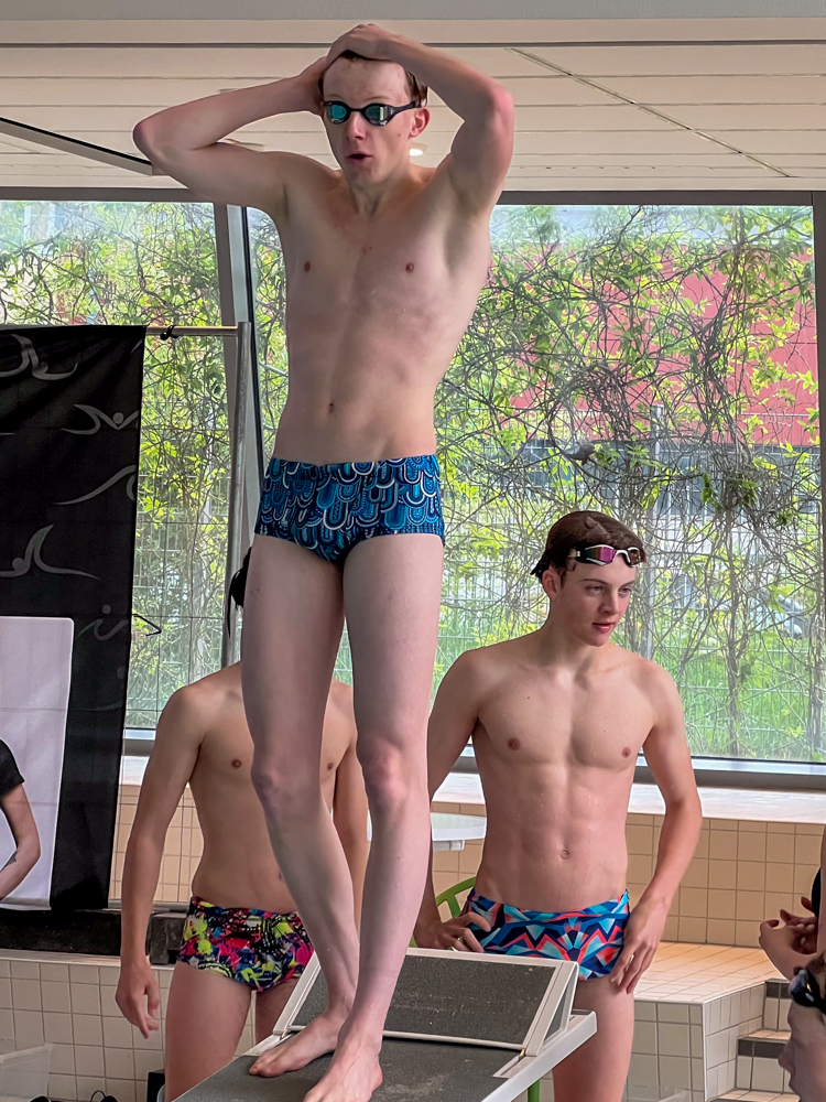 Nachdem es am Samstag dann direkt mit der nächsten Staffel weiterging (Leif, Emma, Sara und Hadrien über 4x100m Freistil), folgten für Emma Rüter, Diego Rump, Alexander Golze und Pablo Legendre der Einzelstart über 50m Brust. Einige von ihnen hatten hier neben einer guten Platzierung auch die Hoffnung auf eine Qualifikation zu den DJM Ende Mai im Hinterkopf. Diego, Alex und Pablo konnten die Anspannung in Energie umwandeln und schwammen hier fantastische Bestzeiten. Diego verbesserte sich um fast sechs Zehntel und belegte Platz acht. Damit hat er sich auch den Platz bei den Deutschen Jahrgangsmeisterschaften gesichert. Alex verbesserte sich ebenfalls um eine halbe Sekunde und belegte in einem starken Feld Platz 25. Pablo stellte seinen eigenen Vereinsrekord mit über einer Sekunde Bestzeit ein, sicherte sich Platz 5 und wird auf dieser Strecke ebenfalls bei den DJM starten. Emma konnte auf dieser Strecke ihre Leistung nicht verbessern und landete auf dem 13. Platz.