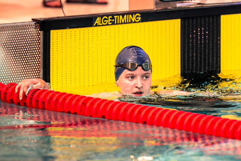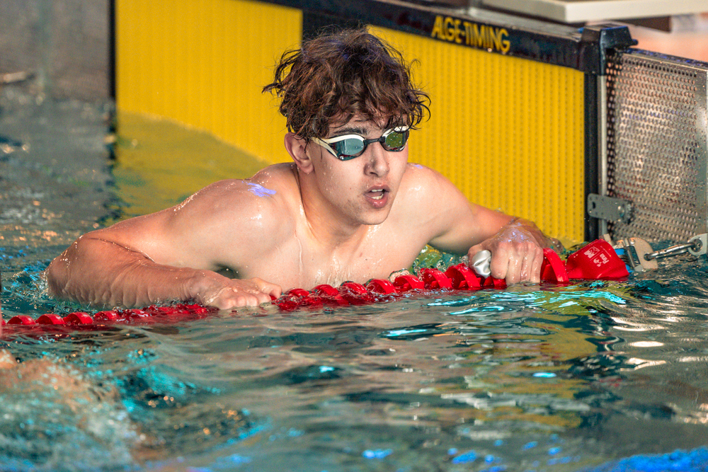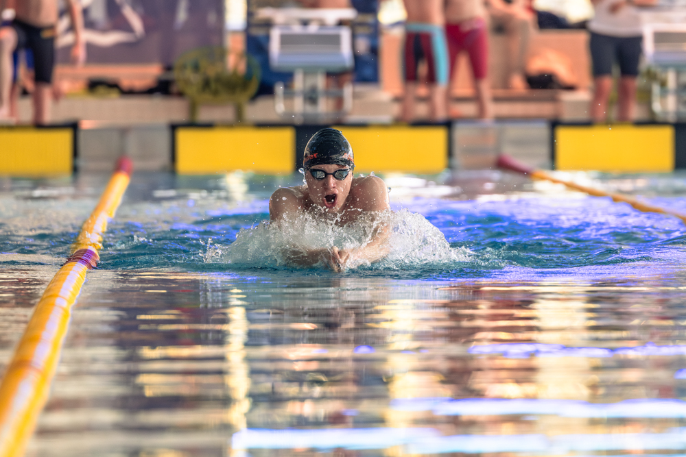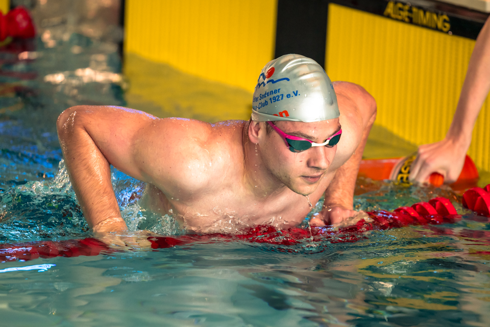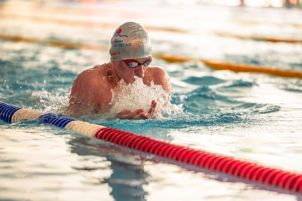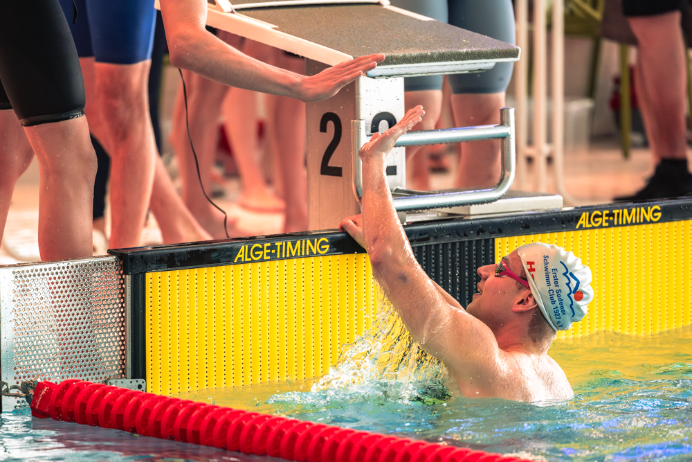 Nachdem es am Samstag dann direkt mit der nächsten Staffel weiterging (Leif, Emma, Sara und Hadrien über 4x100m Freistil), folgten für Emma Rüter, Diego Rump, Alexander Golze und Pablo Legendre der Einzelstart über 50m Brust. Einige von ihnen hatten hier neben einer guten Platzierung auch die Hoffnung auf eine Qualifikation zu den DJM Ende Mai im Hinterkopf. Diego, Alex und Pablo konnten die Anspannung in Energie umwandeln und schwammen hier fantastische Bestzeiten. Diego verbesserte sich um fast sechs Zehntel und belegte Platz acht. Damit hat er sich auch den Platz bei den Deutschen Jahrgangsmeisterschaften gesichert. Alex verbesserte sich ebenfalls um eine halbe Sekunde und belegte in einem starken Feld Platz 25. Pablo stellte seinen eigenen Vereinsrekord mit über einer Sekunde Bestzeit ein, sicherte sich Platz 5 und wird auf dieser Strecke ebenfalls bei den DJM starten. Emma konnte auf dieser Strecke ihre Leistung nicht verbessern und landete auf dem 13. Platz.